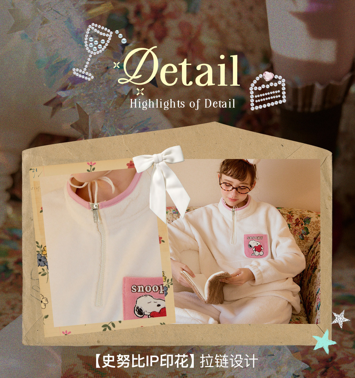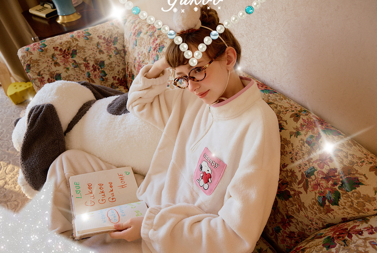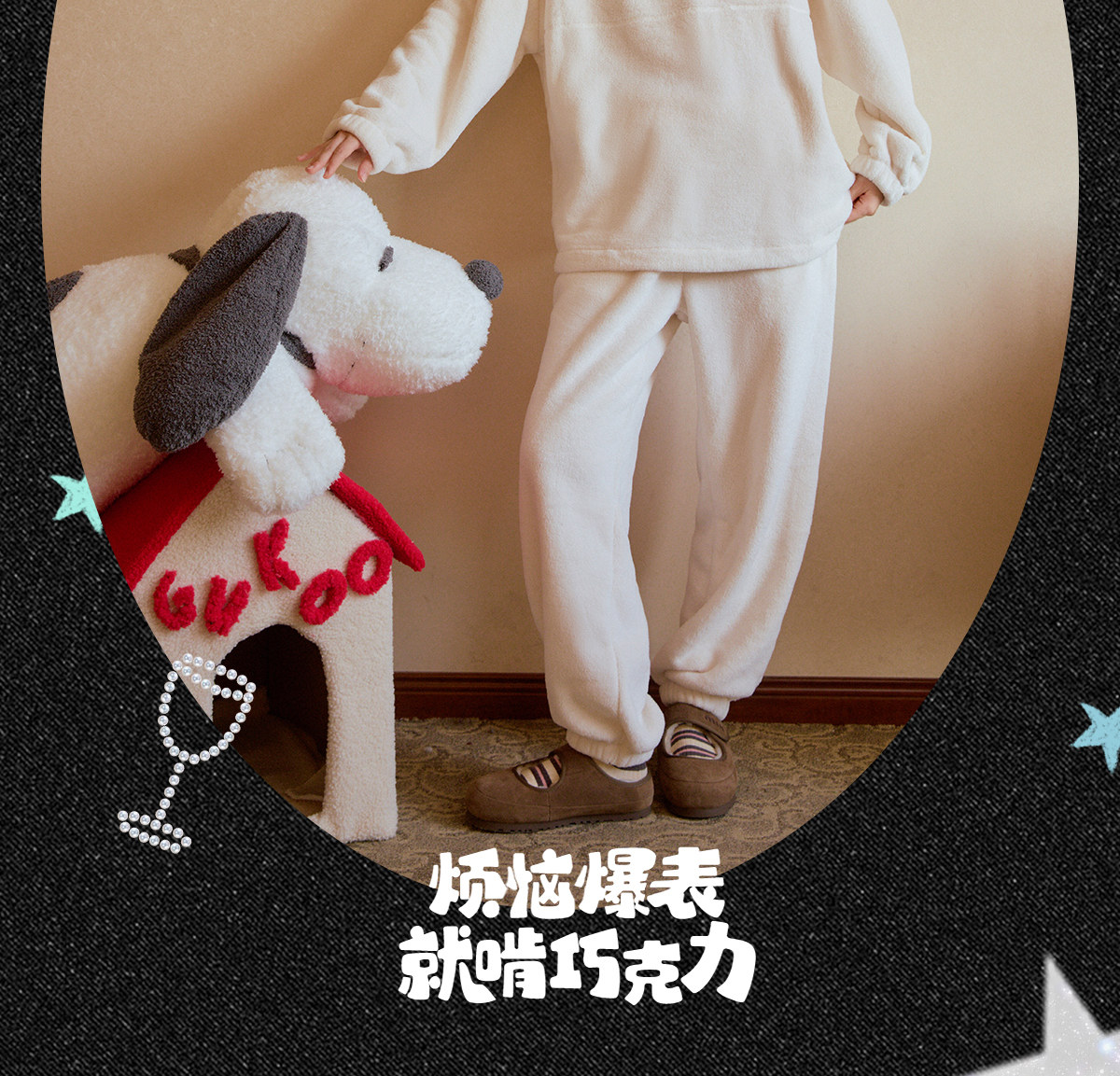Gukoo/果壳睡衣女冬季毛绒保暖新款史努比联名女士家居服套装D