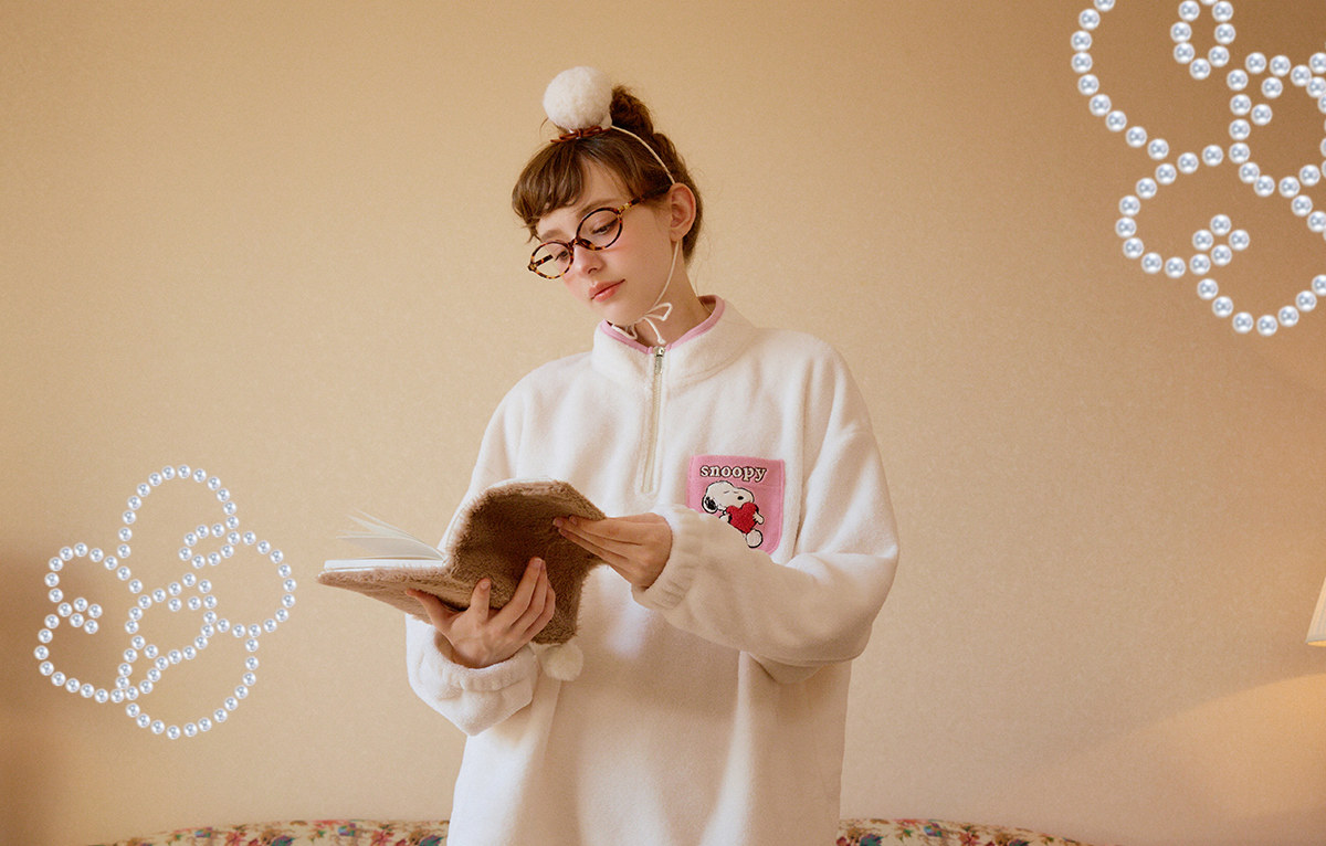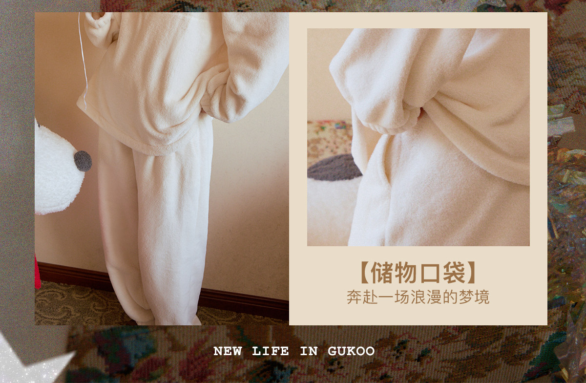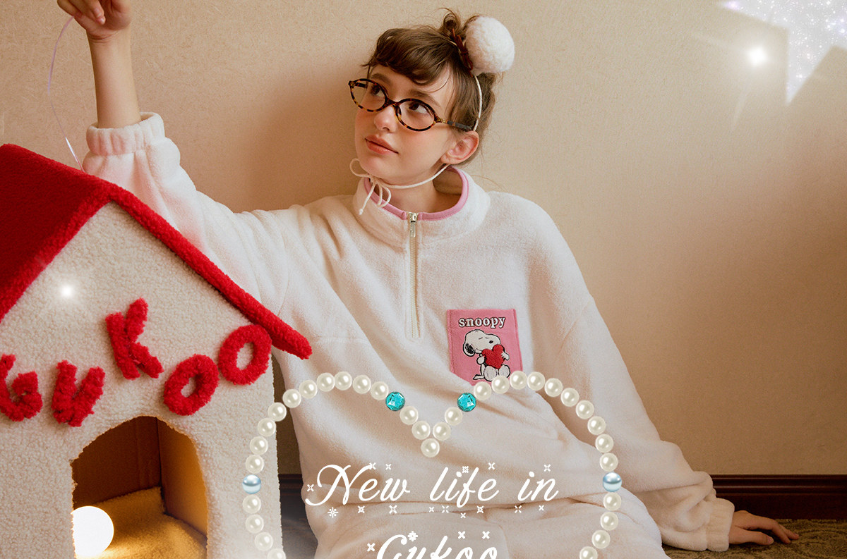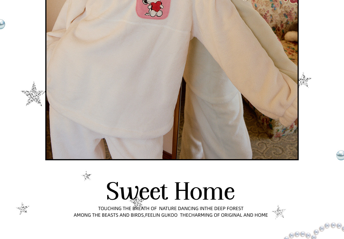 Gukoo/果壳睡衣女冬季毛绒保暖新款史努比联名女士家居服套装D