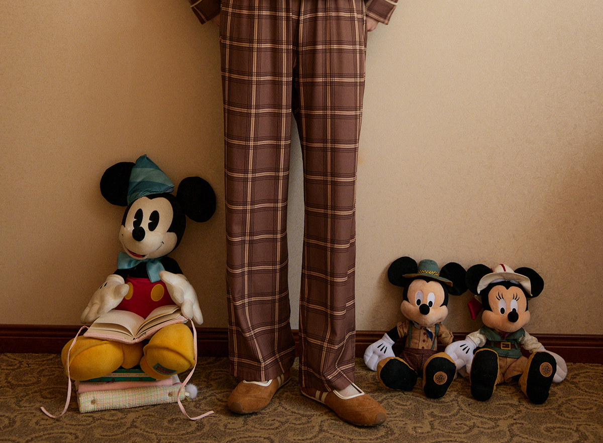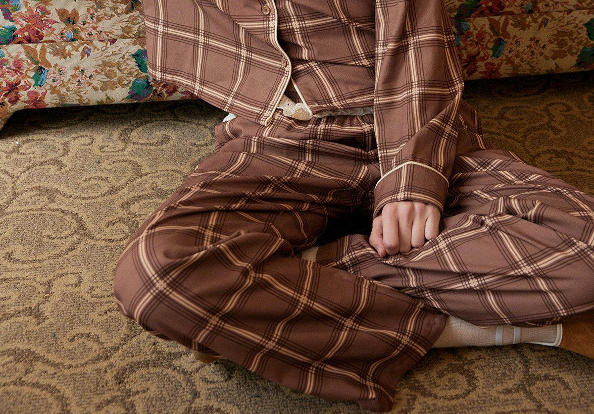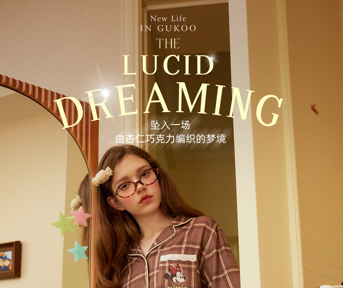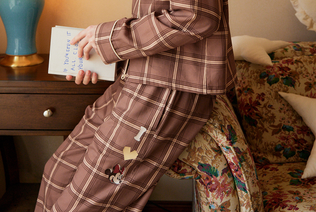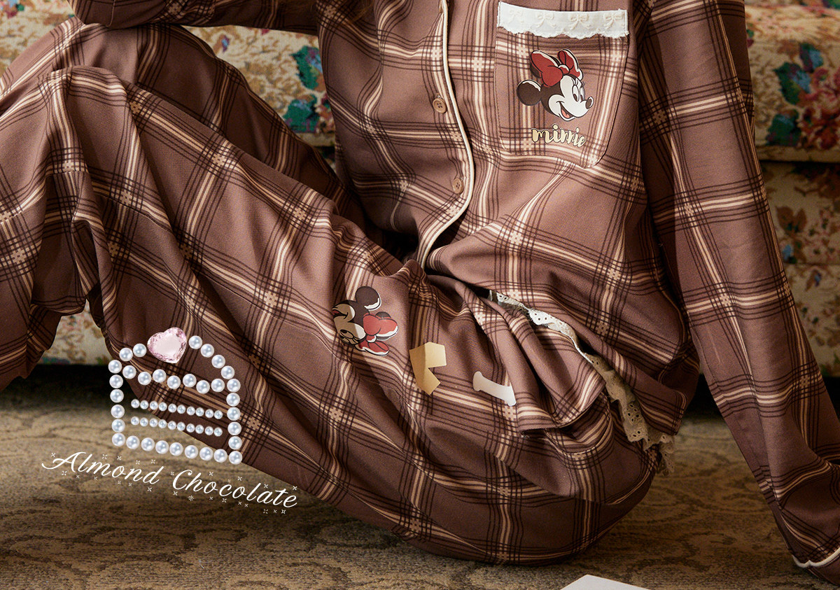 Gukoo/果壳睡衣女春秋款迪士尼联名新款格子简约女士家居服套装C