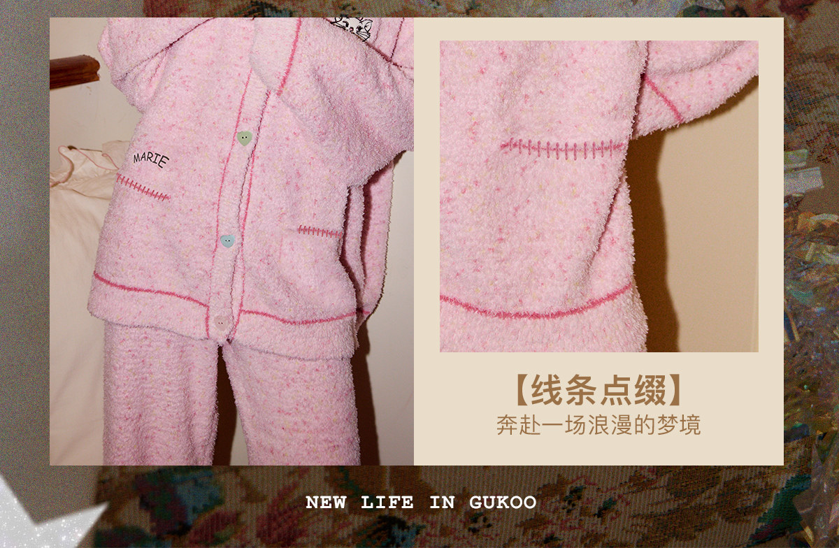 Gukoo/果壳睡衣女冬季半边绒保暖新款迪士尼联名甜美家居服套装D