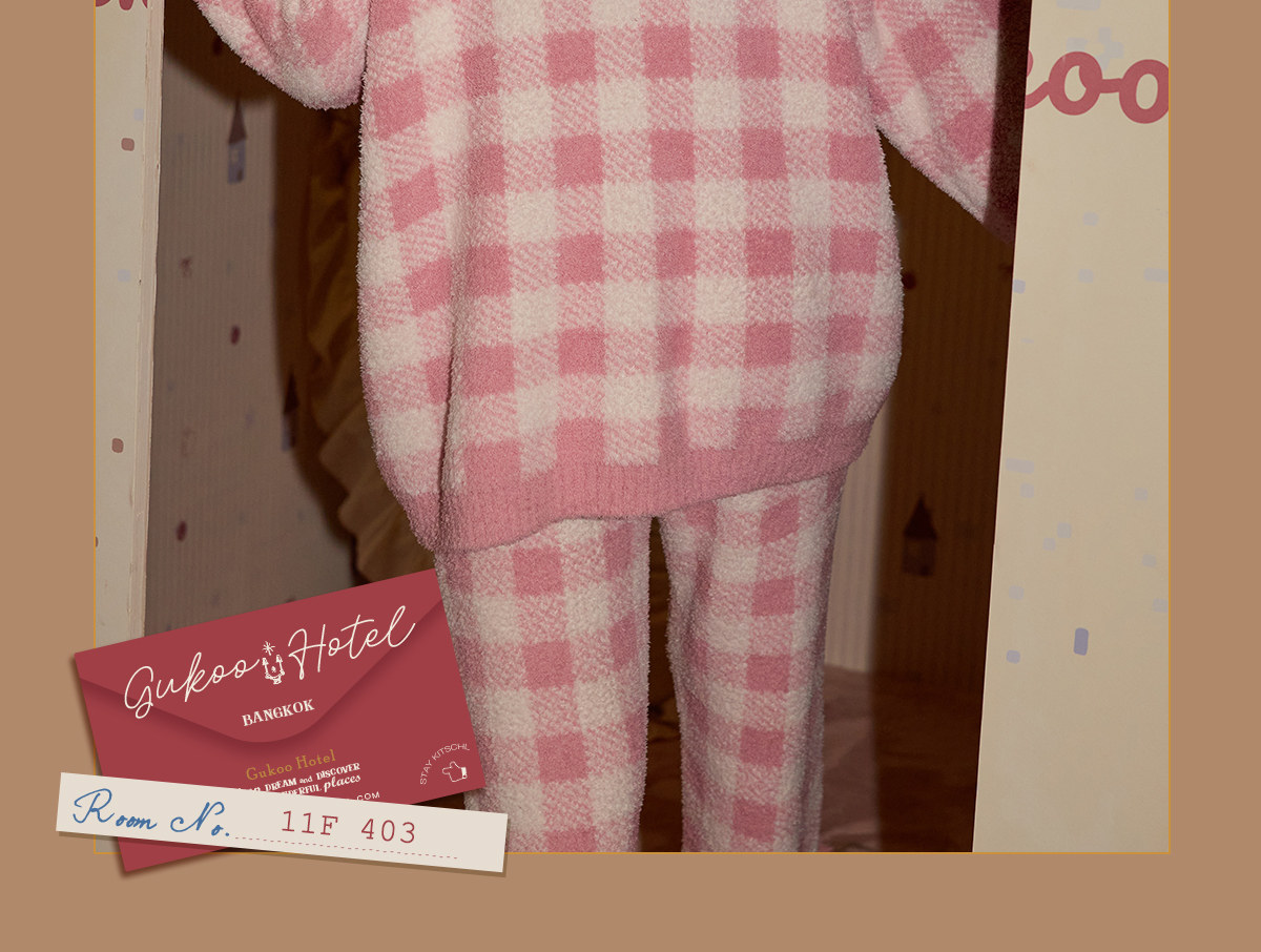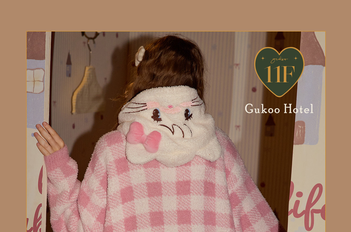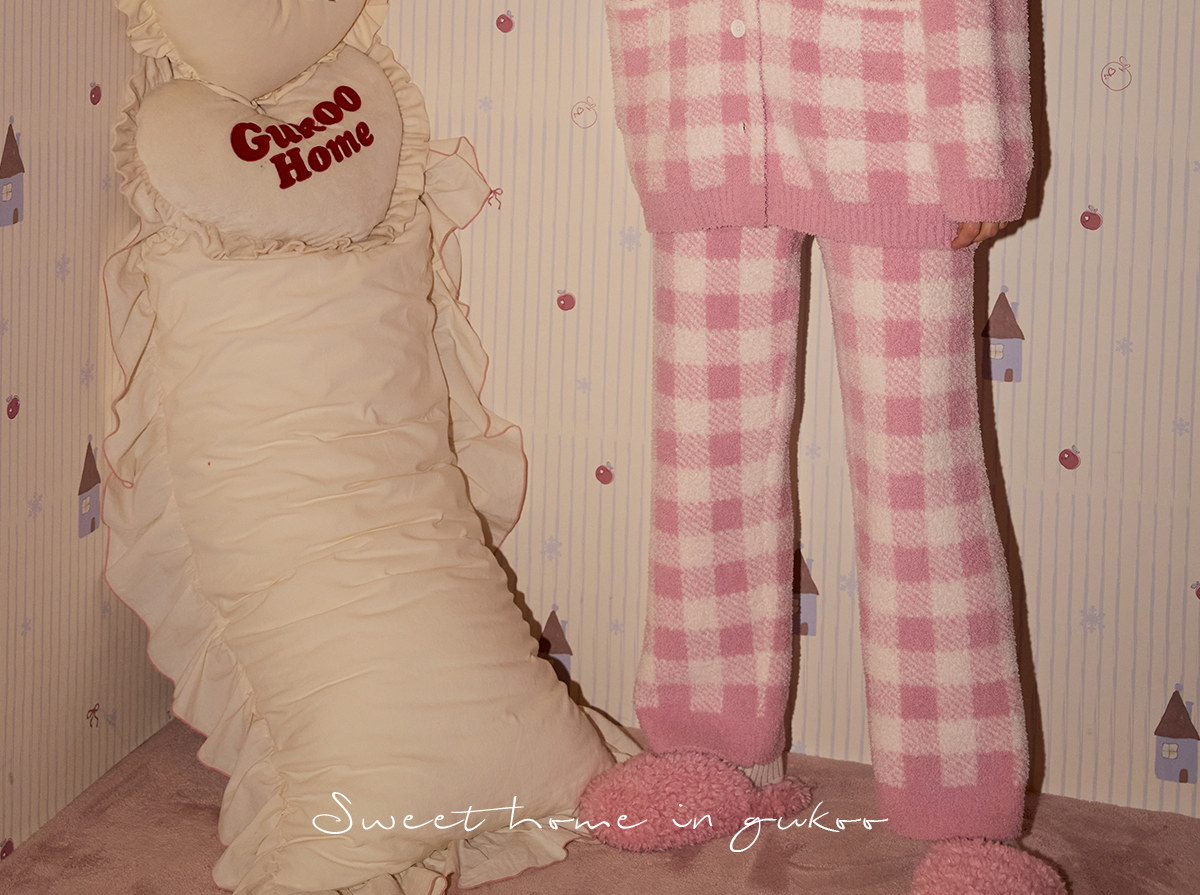 Gukoo/果壳睡衣女冬季mikko联名新款半边绒保暖女士家居服套装D