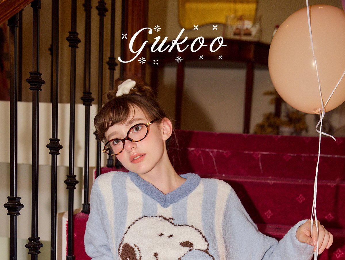 Gukoo/果壳新款半边绒保暖睡衣女秋冬可爱卡通家居服冬套装D