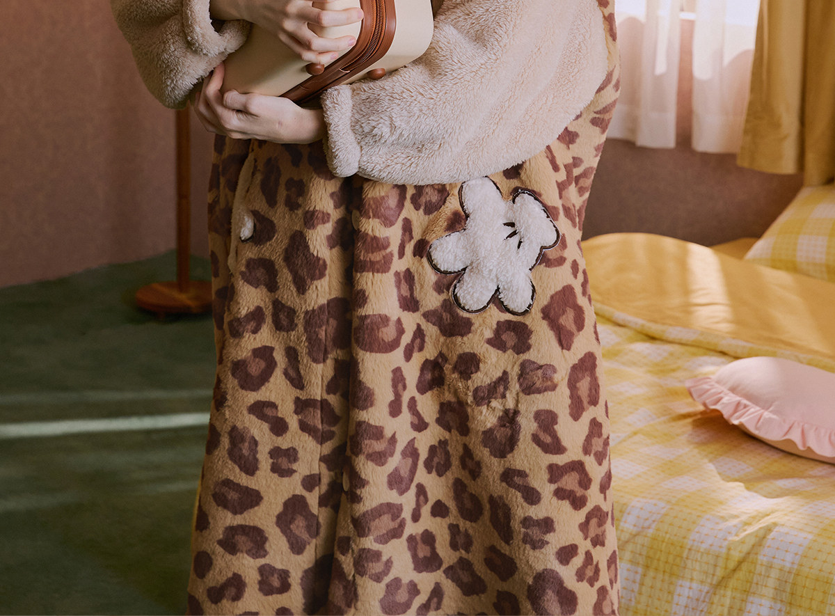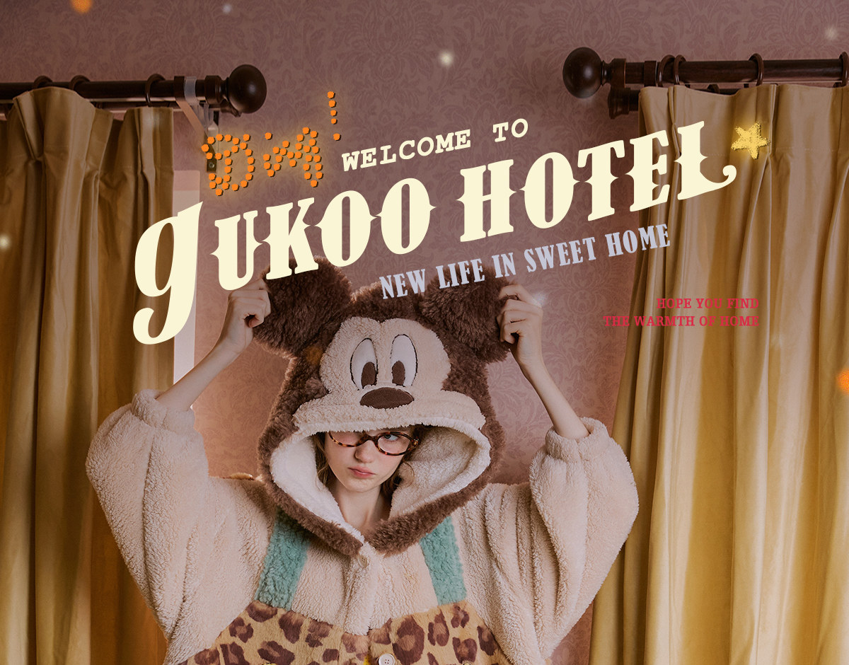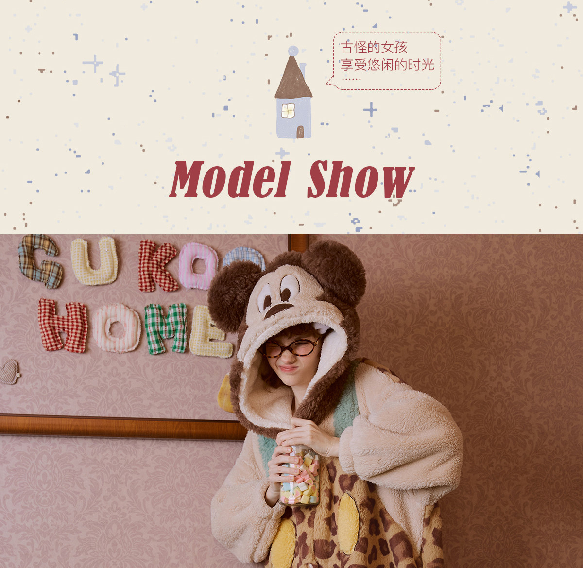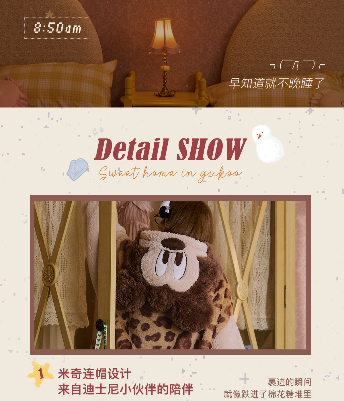 Gukoo/果壳睡袍女冬季毛绒保暖新款迪士尼联名新款家居服睡袍D