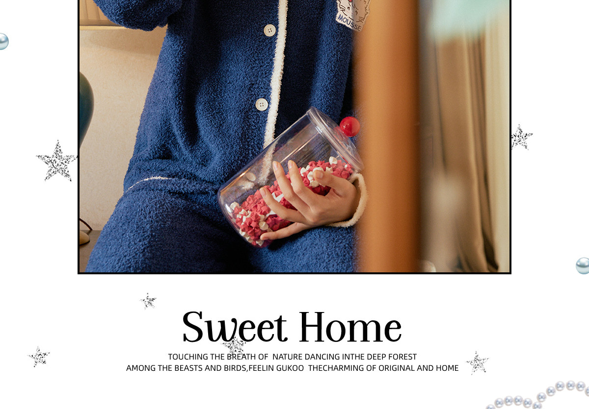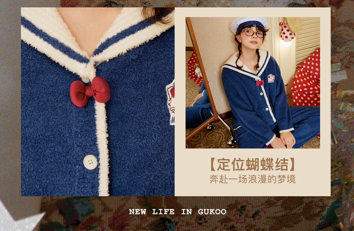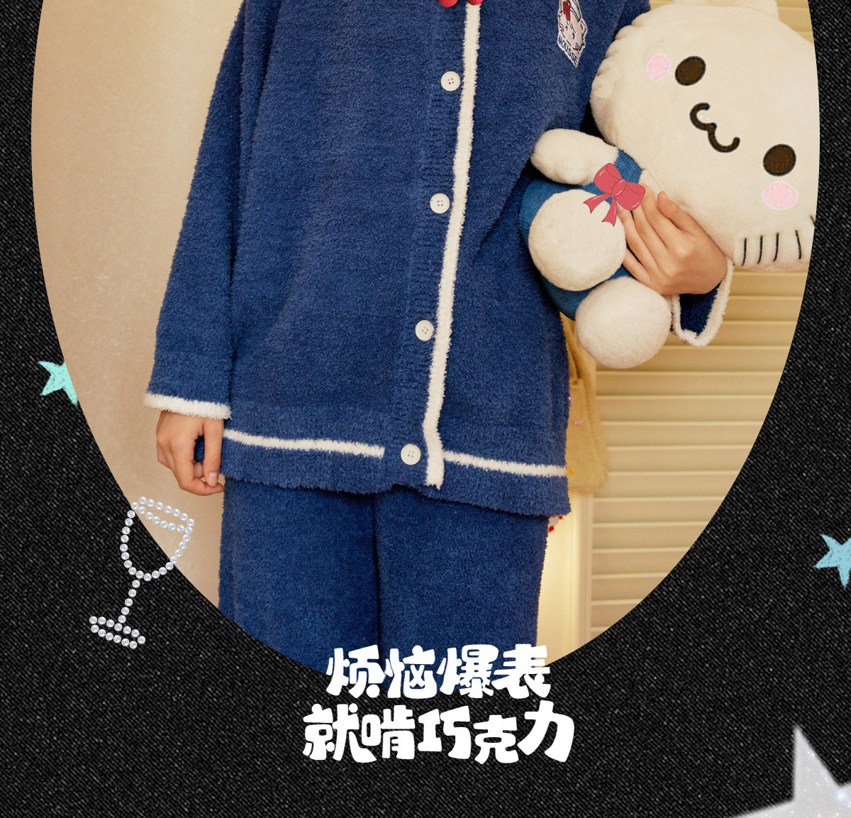 Gukoo/果壳睡衣女冬季mikko联名新款半边绒保暖女士家居服套装D