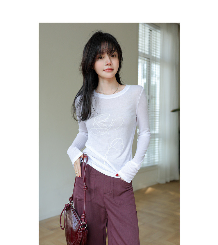 【空气慕斯打底】秋季艺术感线条印花圆领打底衫正肩修身女式t恤