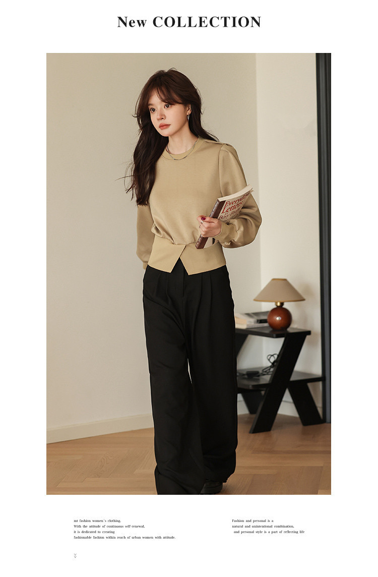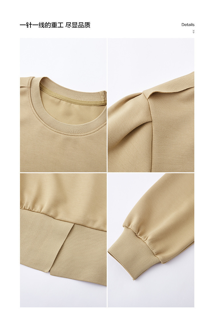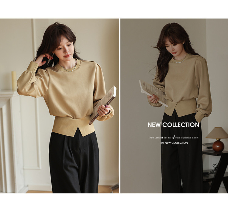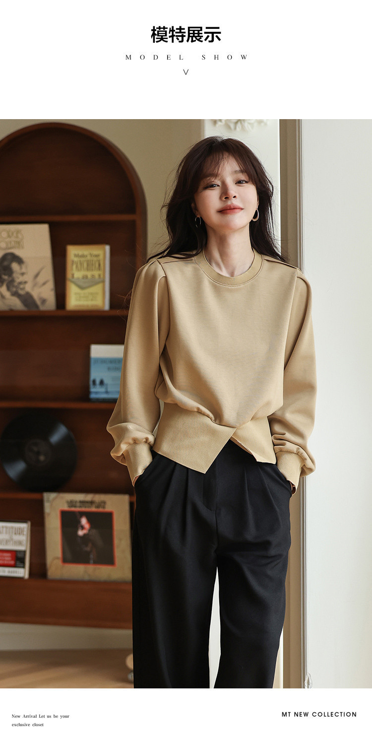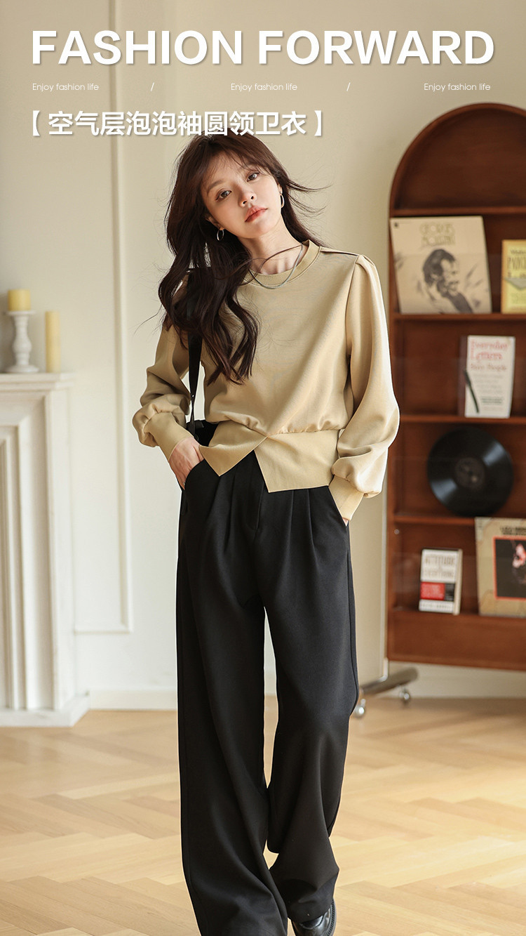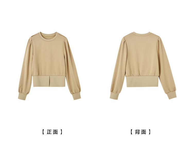 【韩版加绒廓形】2025冬空气层泡泡袖下摆开叉圆领卫衣