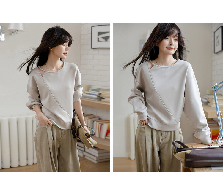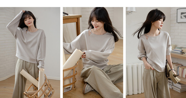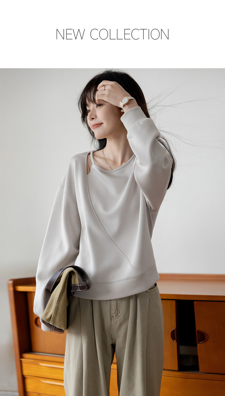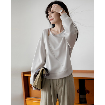 【慵懒周末】秋季法式假两件镂空舒适空气层上衣舒适遮肉女式卫衣
