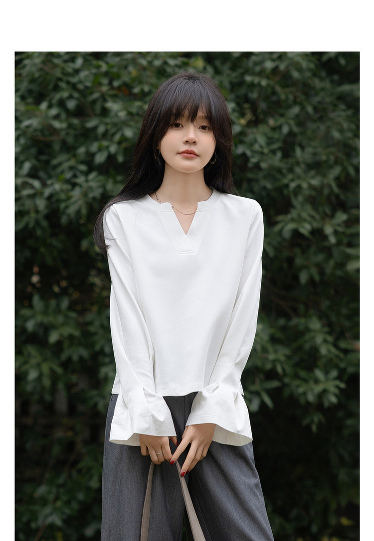 【舒爽棉弹】秋季设计感鸡心领结构袖宽松遮肉好搭藏肉卫衣女上衣