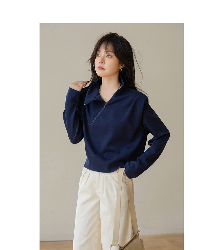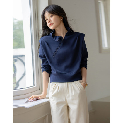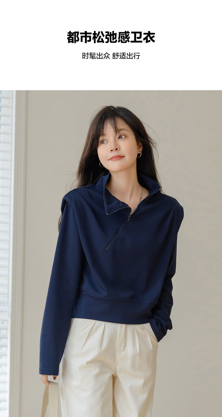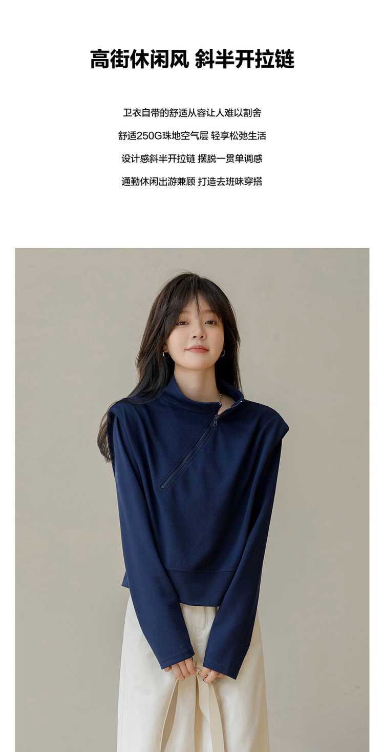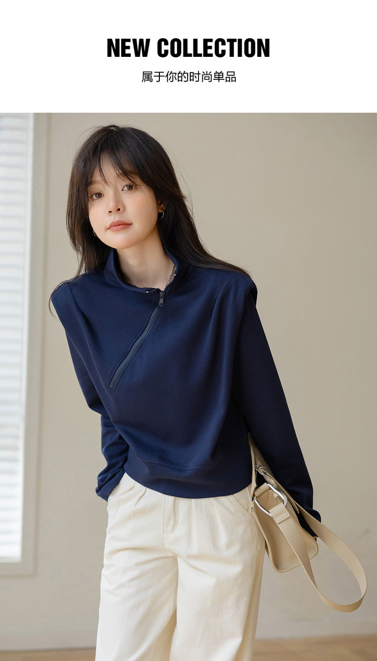 【小众垫肩设计】秋 立领斜拉链短款收腰长袖卫衣