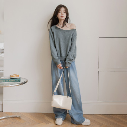 【甜酷慵懒感】秋季款休闲烫金毛圈布露肩小刺绣设计时尚长袖卫衣
