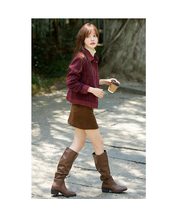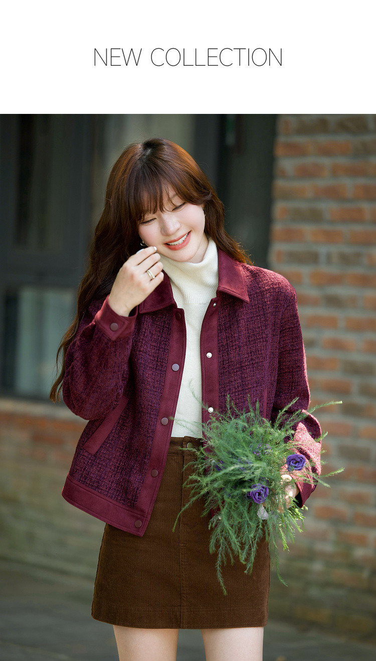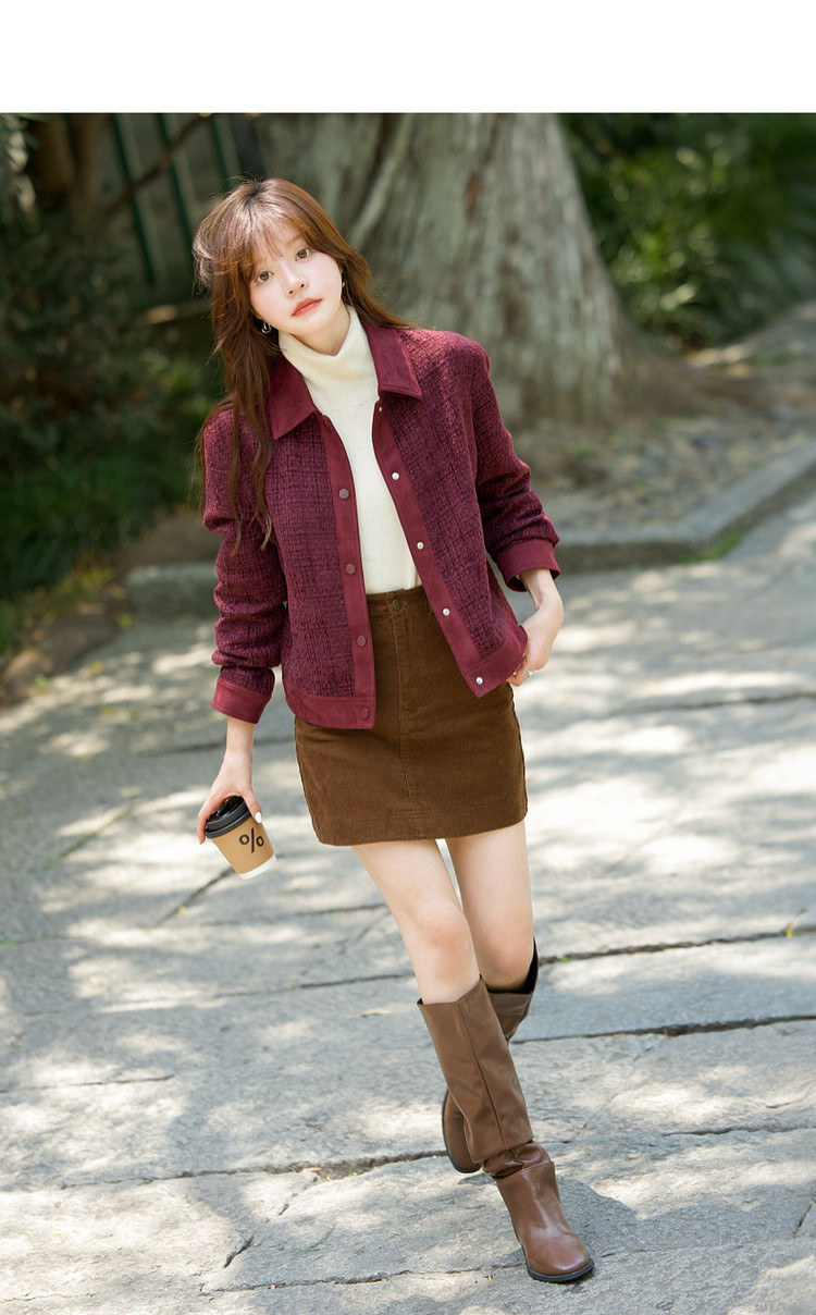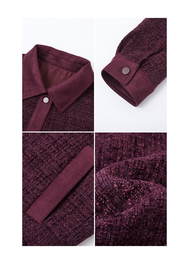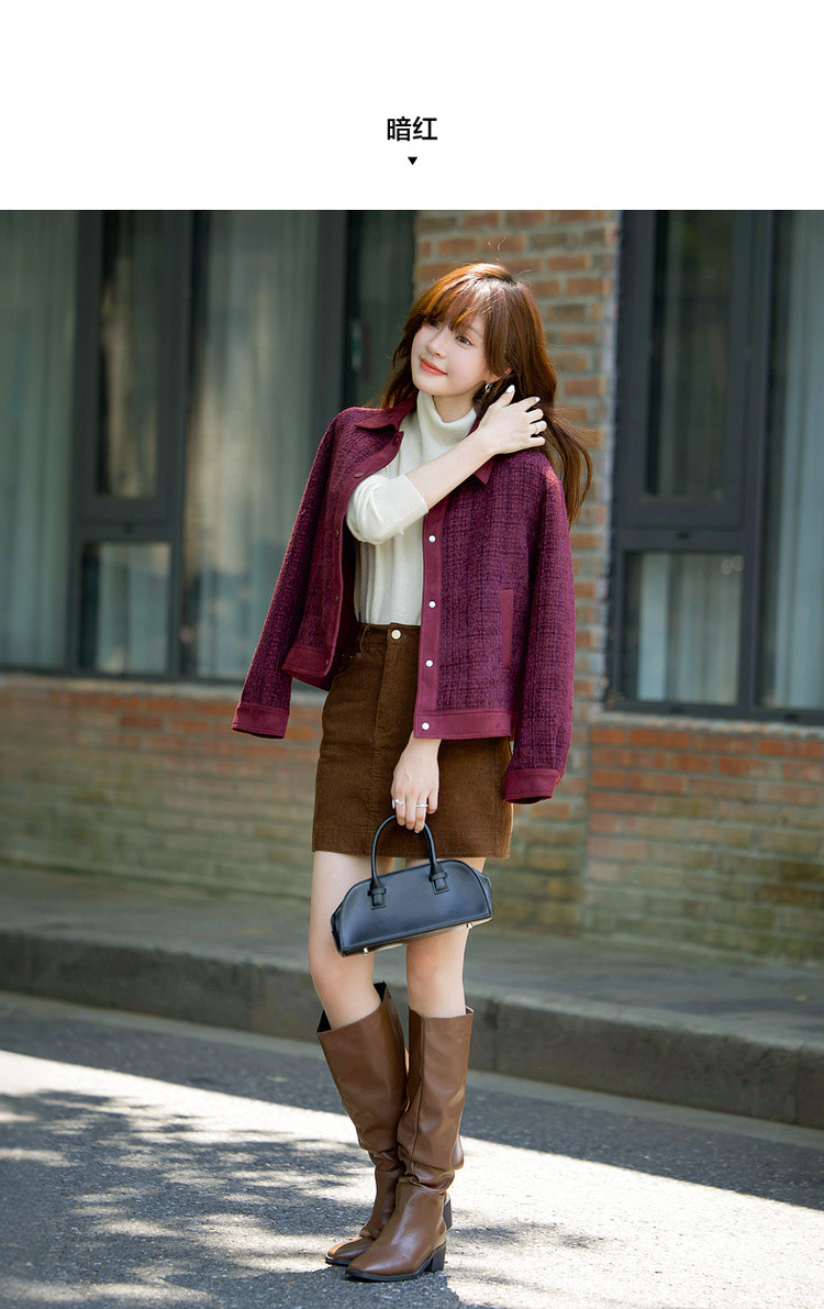 【无界优雅】2025冬小香风肌理感拼接翻领气质正肩单排扣女式外套