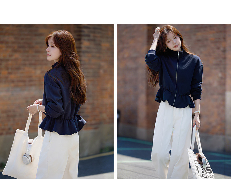 【轻行衣橱】2025冬都市休闲立领荷叶边下摆收腰含棉小个子女式外套