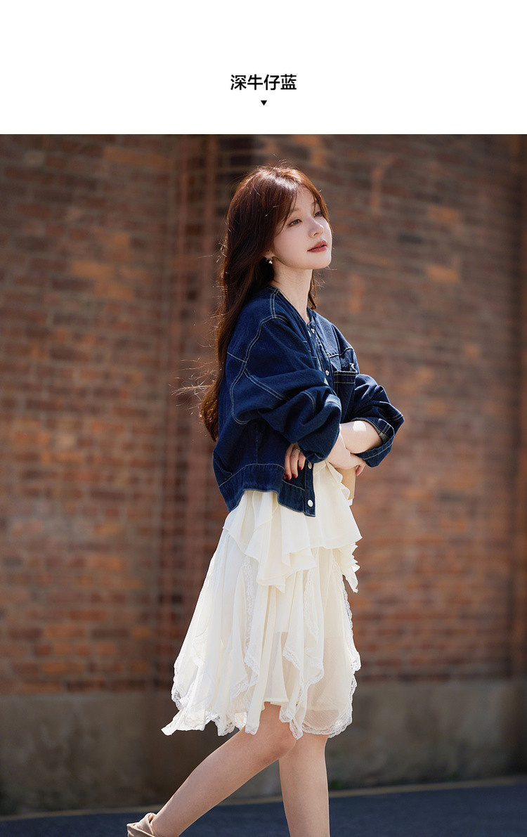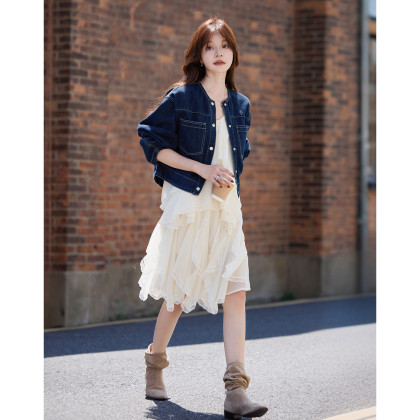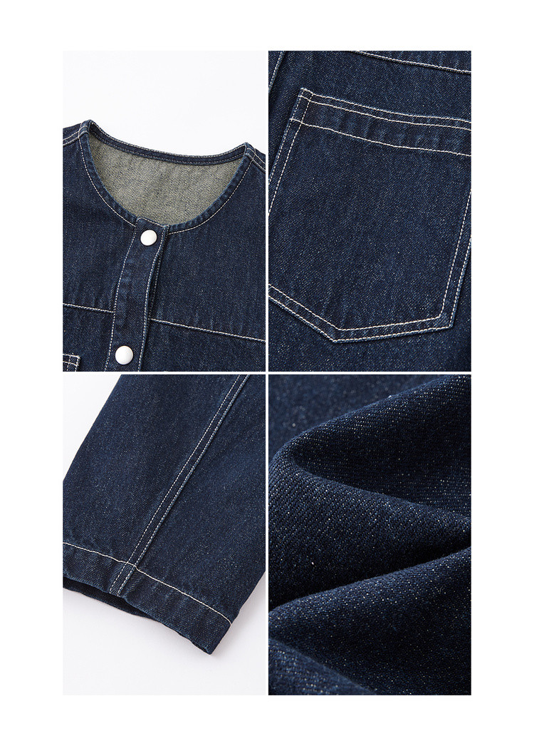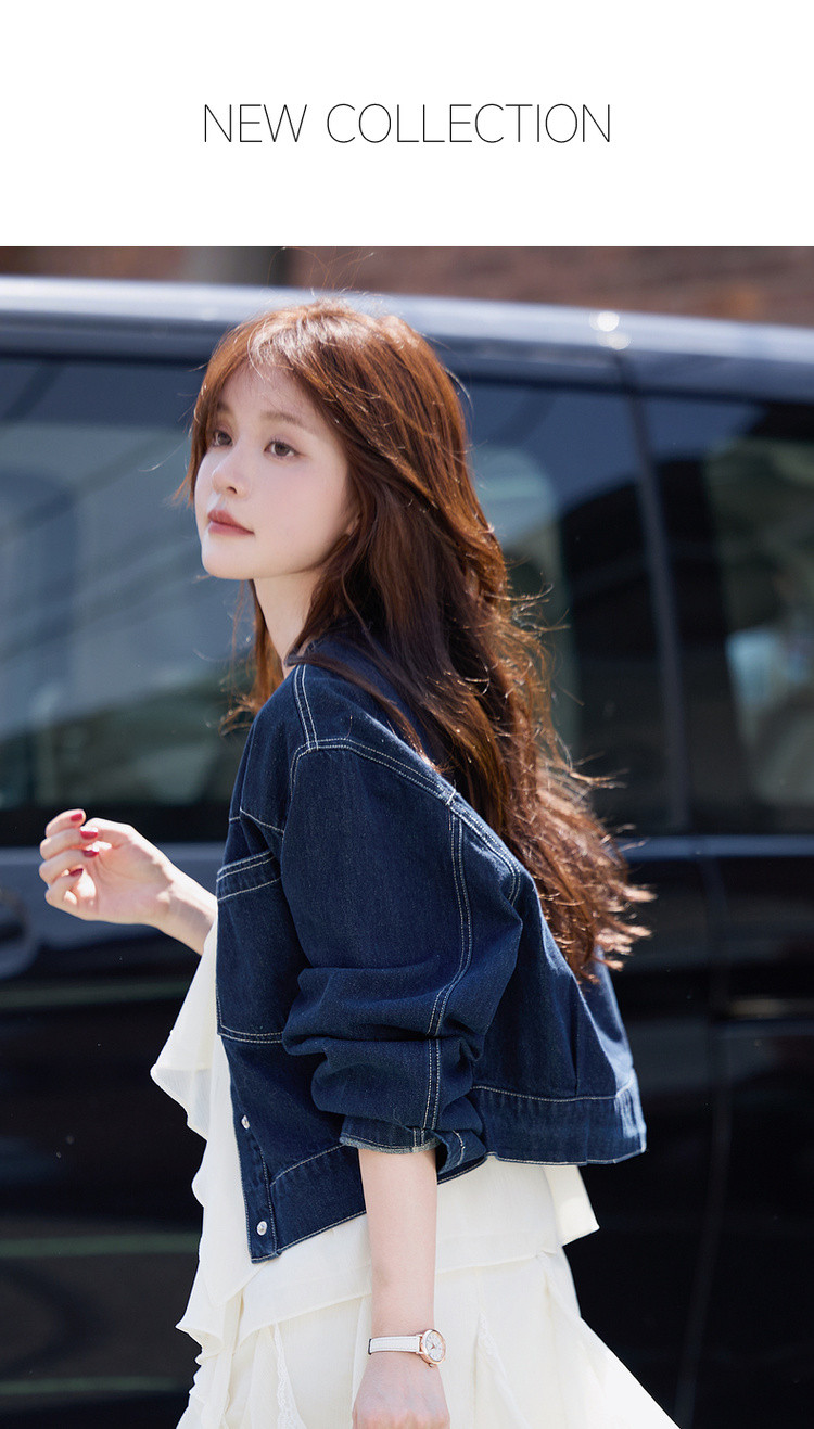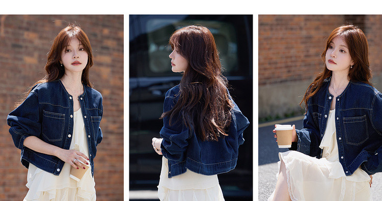 【极简衣橱】秋季云感棉圆领撞色压线宽松休闲小个子女式牛仔外套