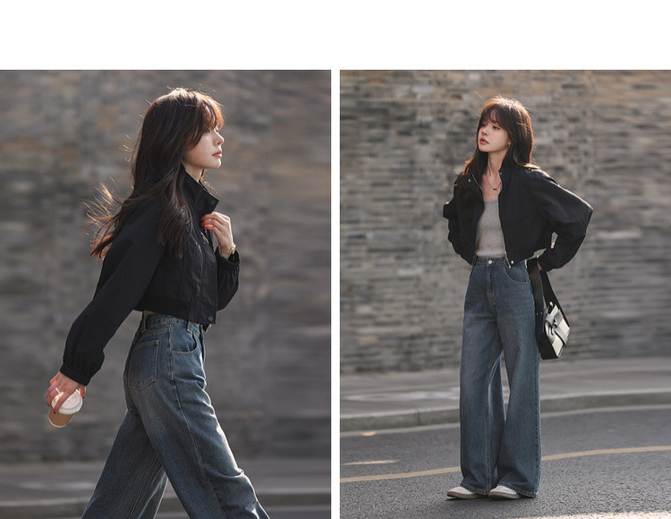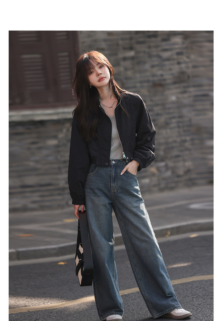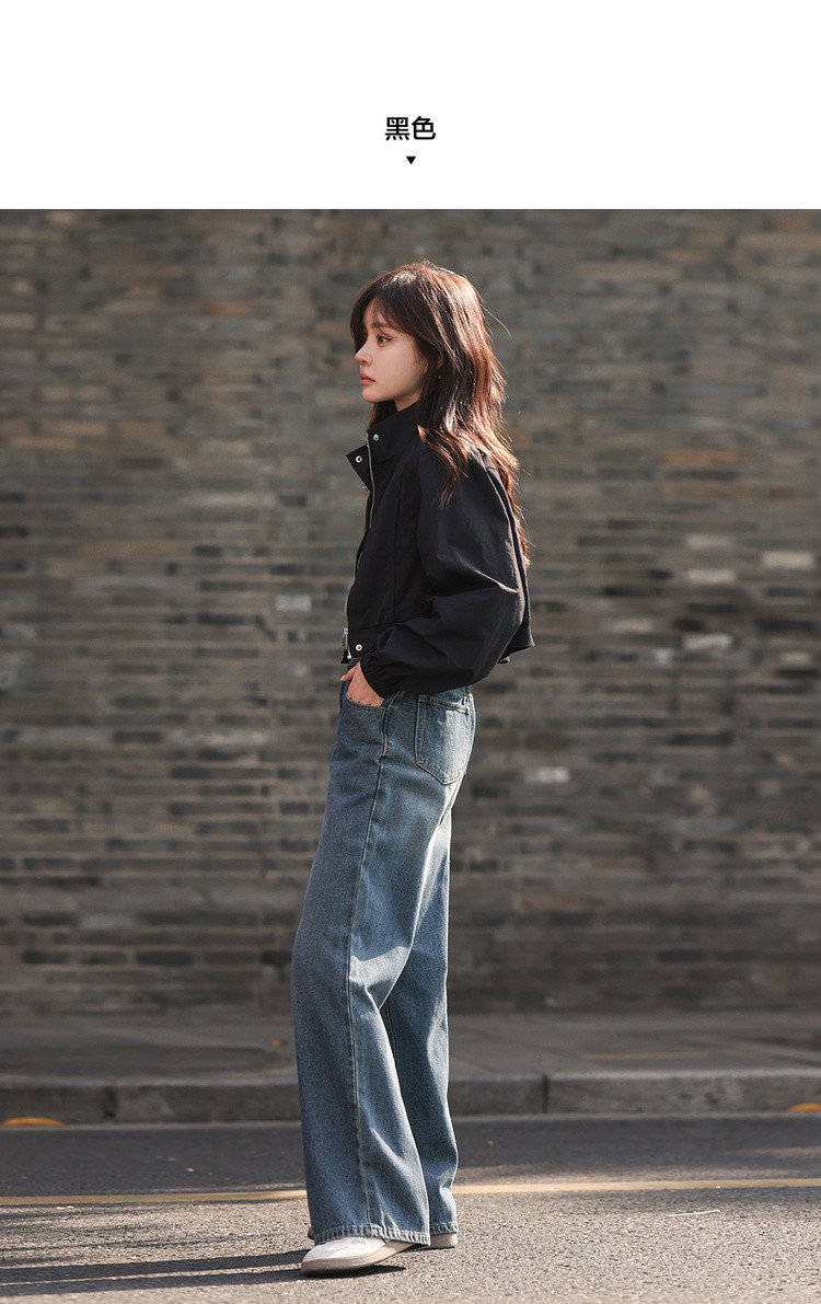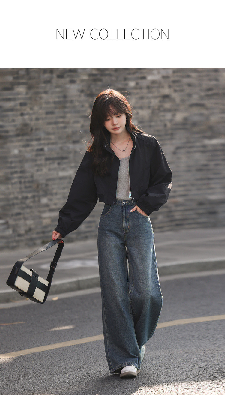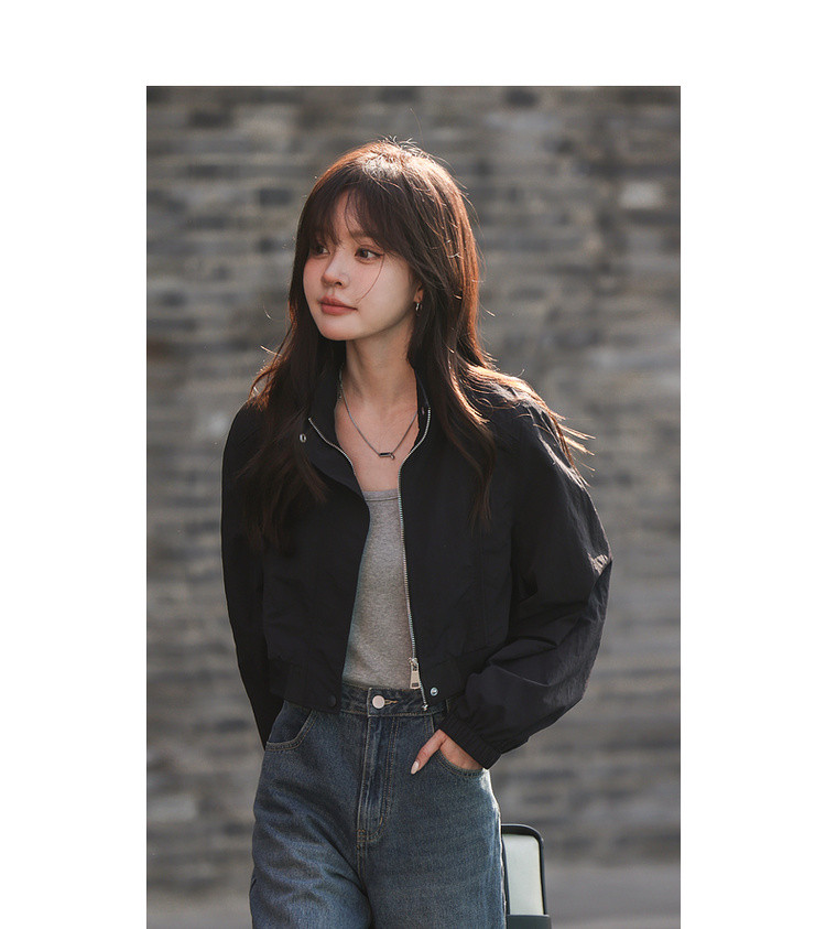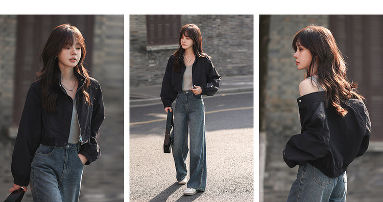 【穿型都市】秋季街头风立领休闲轻薄拉链宽松短款小个子女式外套