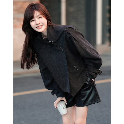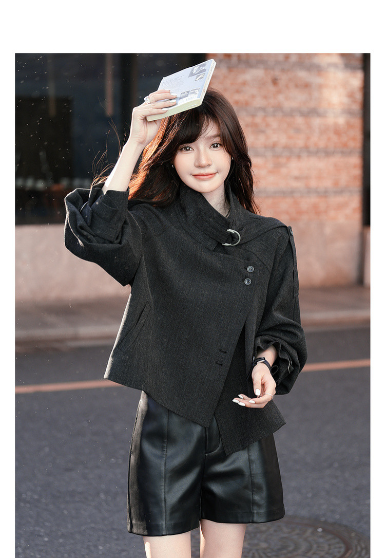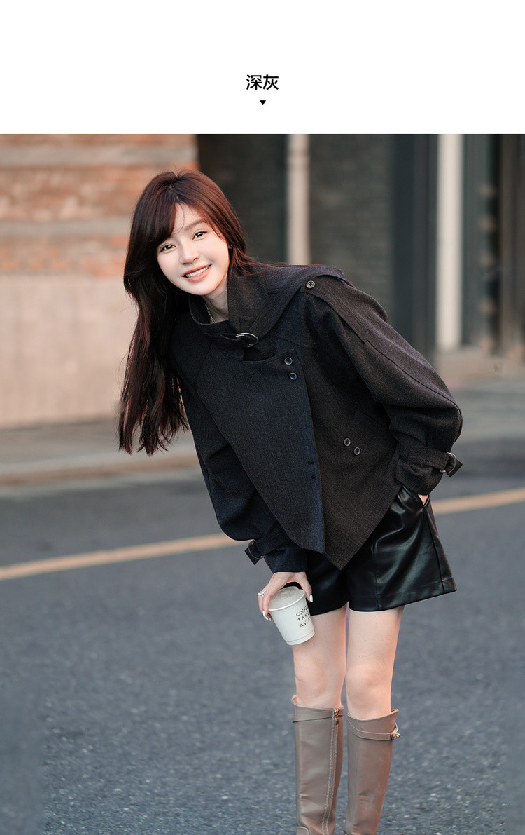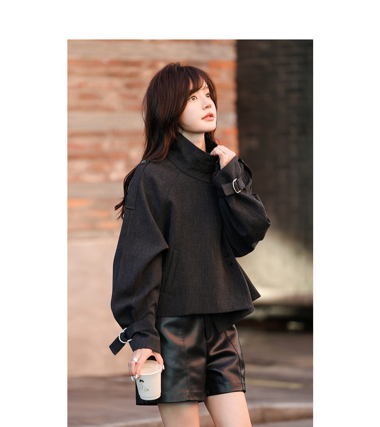 【柔飒通勤】秋季工装风立领单排扣宽松休闲小个子风衣外套女短款