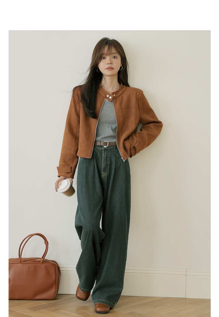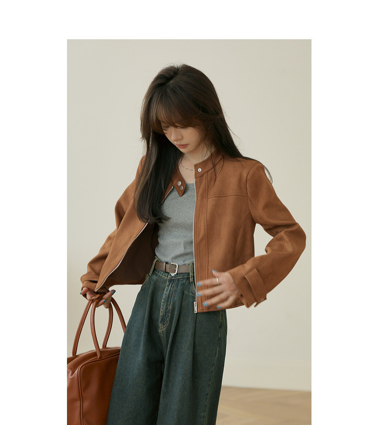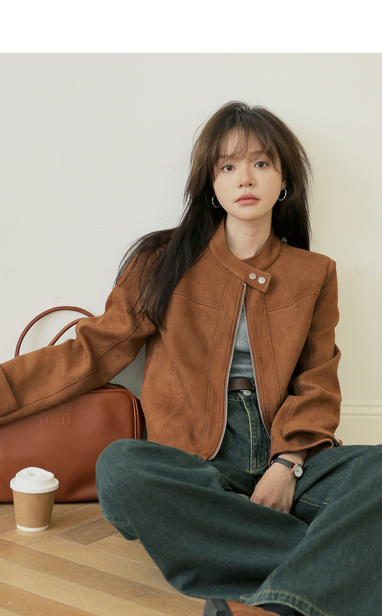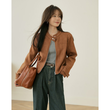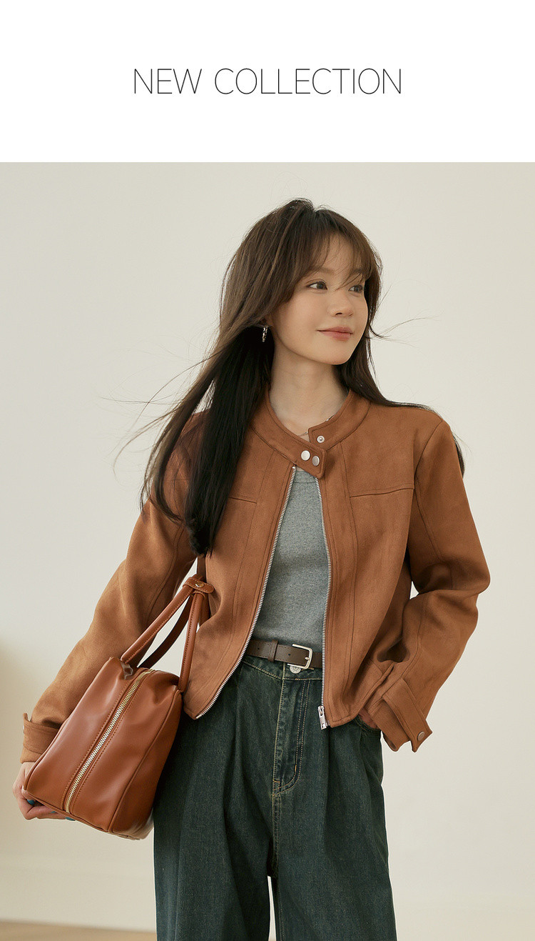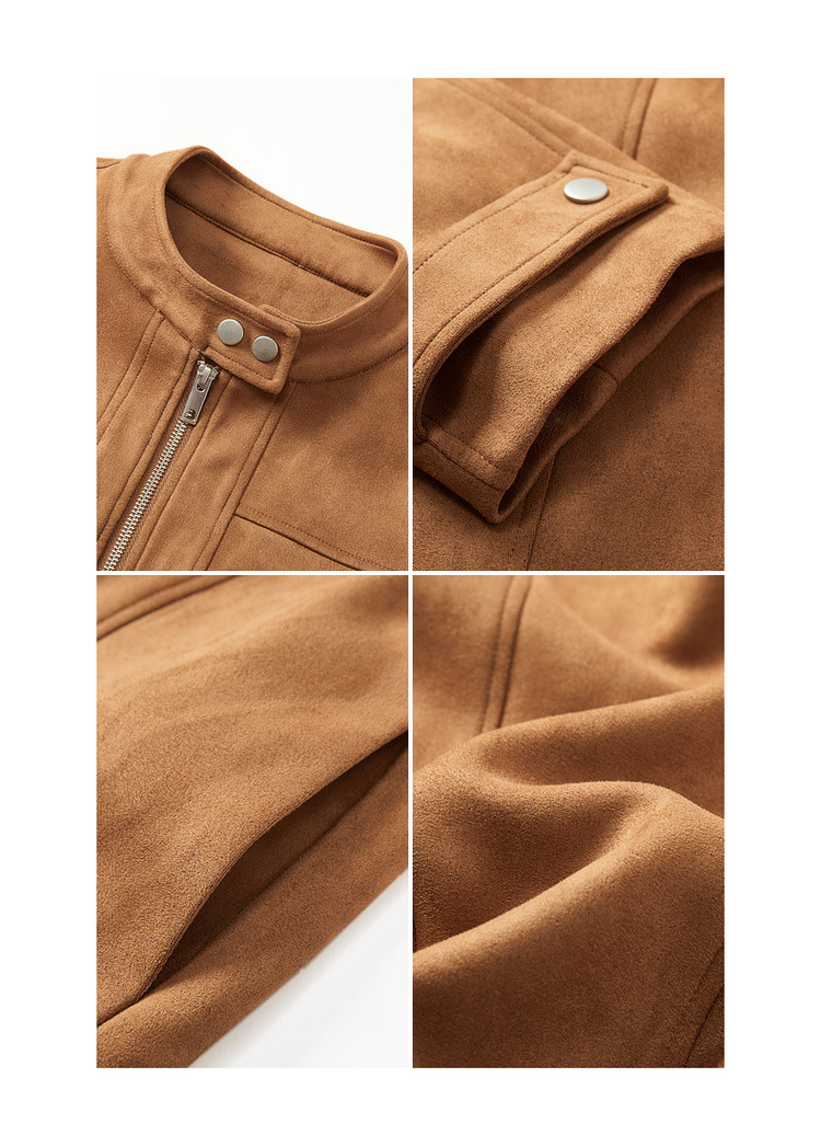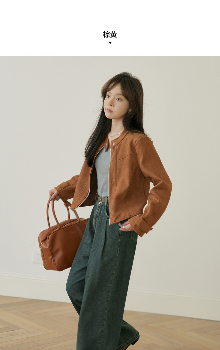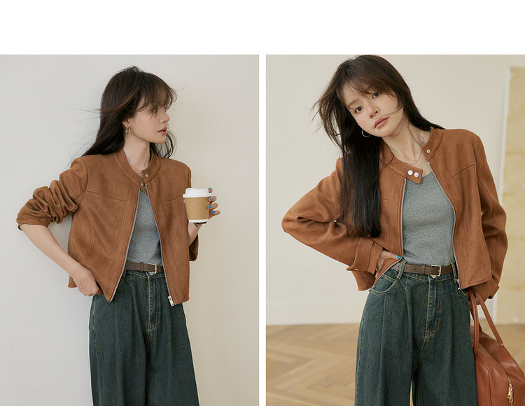 【复古麂皮绒】秋季机车风小立领拉链休闲短款小个子女式夹克外套