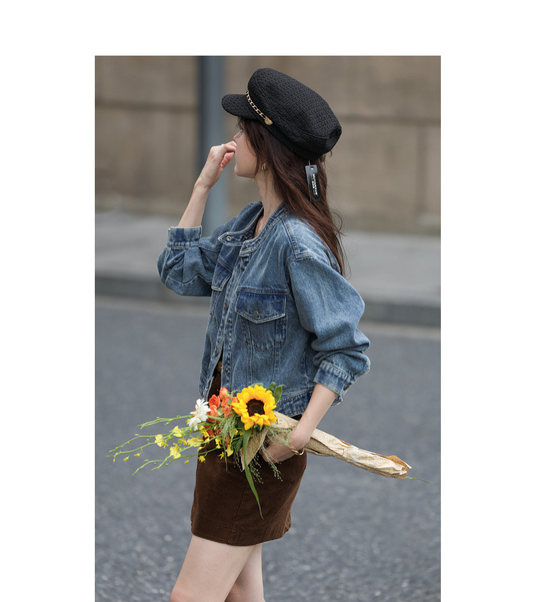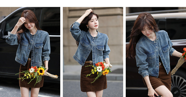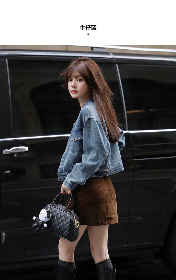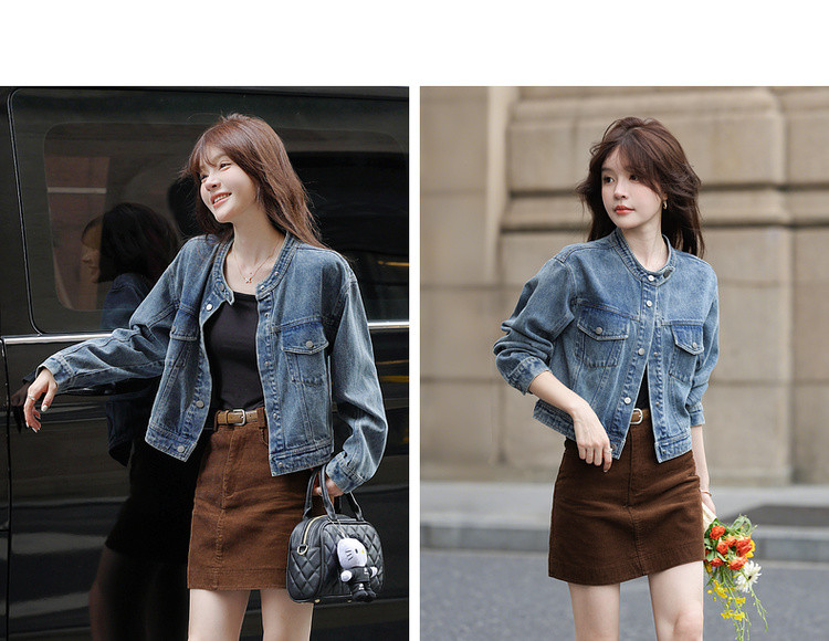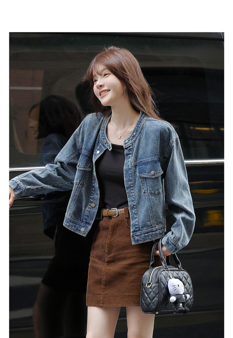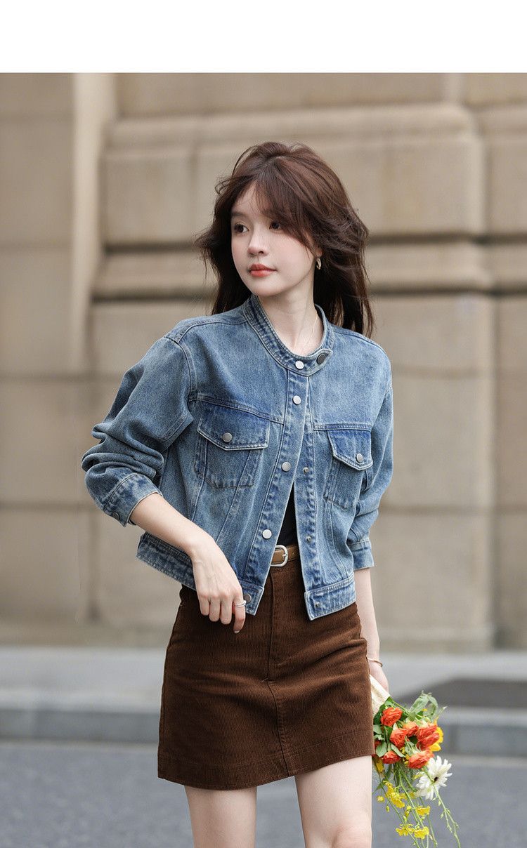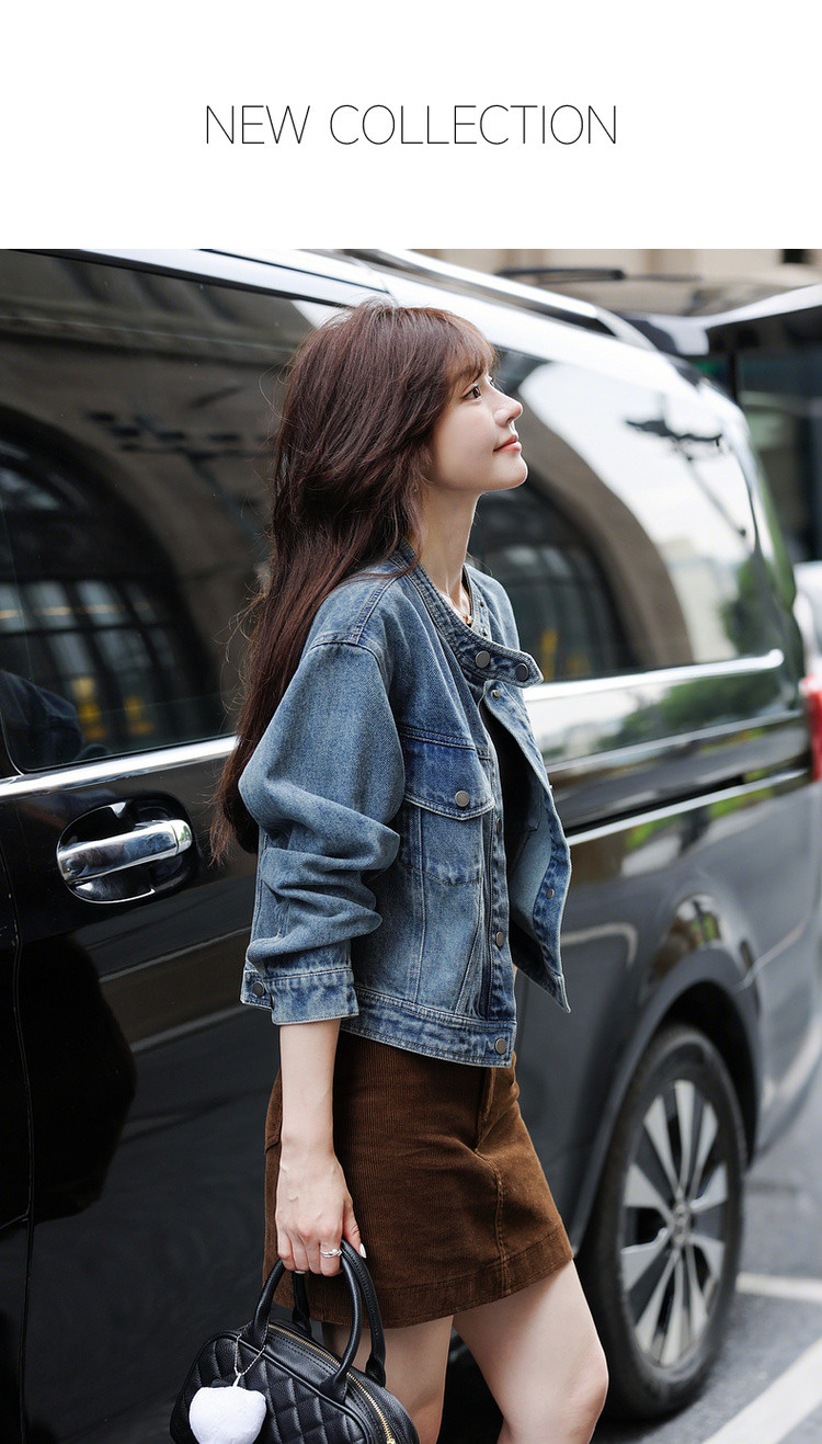 【丹宁时髦客】秋季复古风水洗云朵棉立领松弛感短款女式牛仔外套