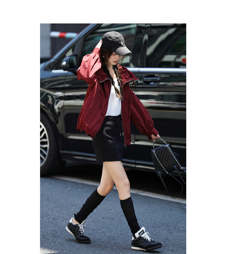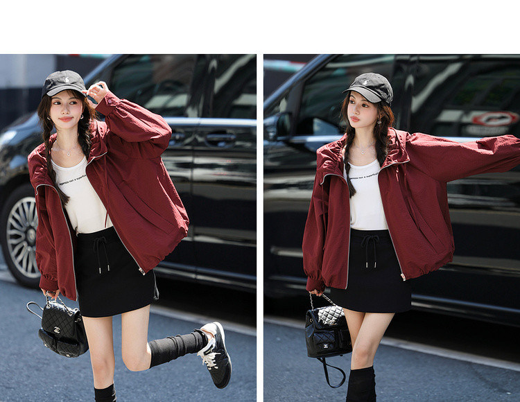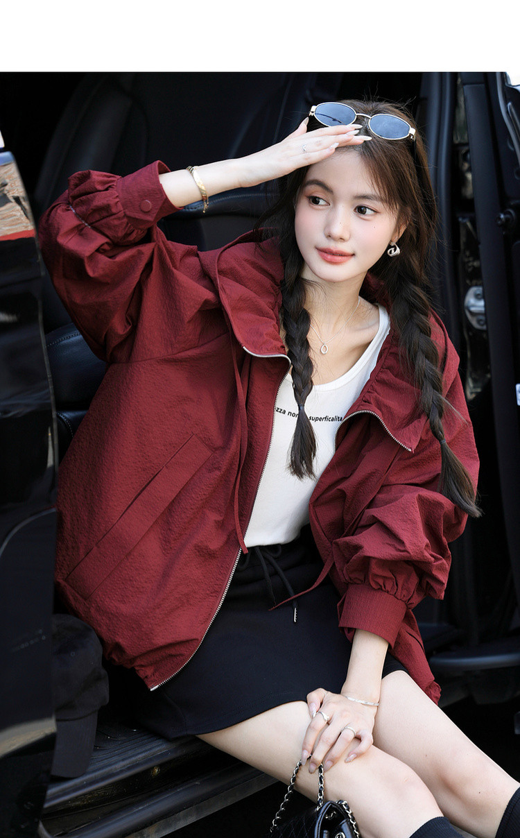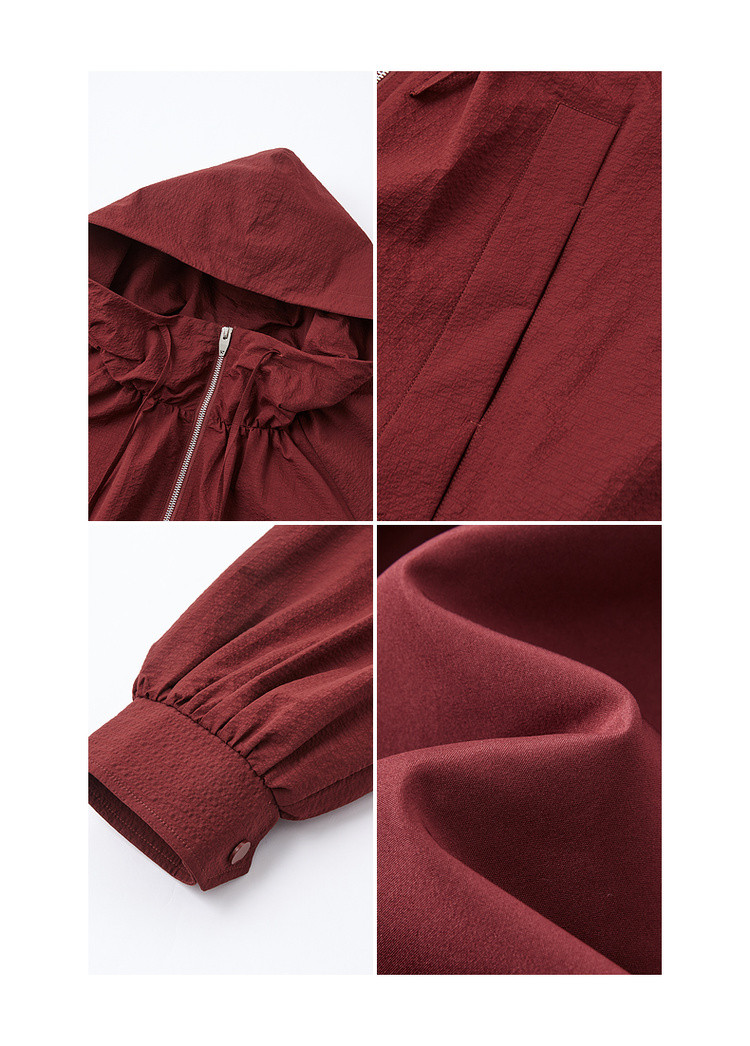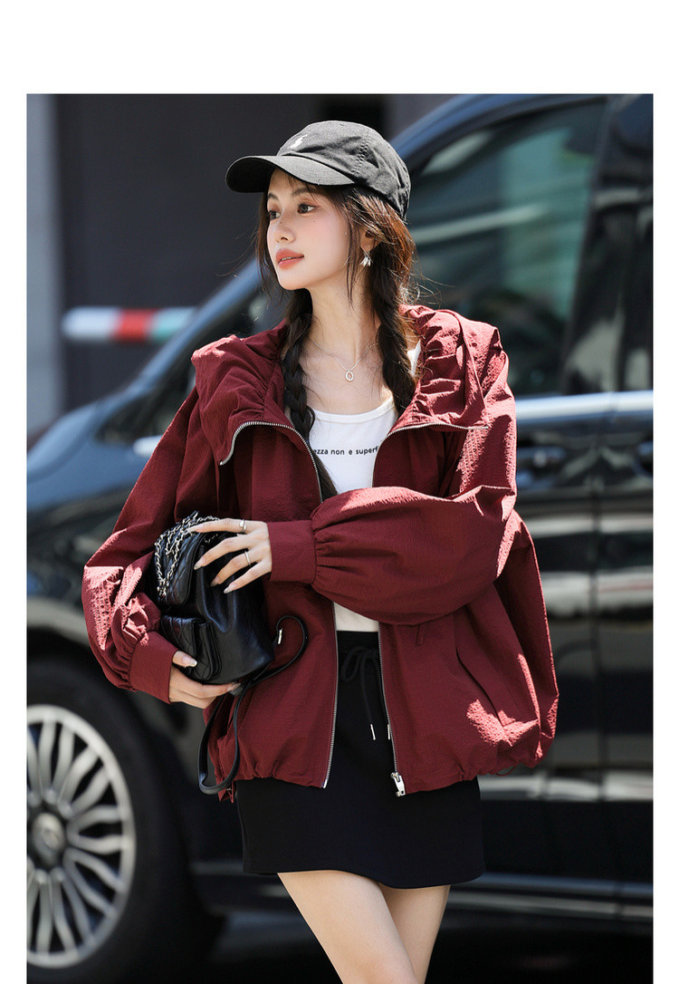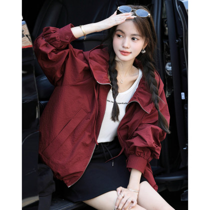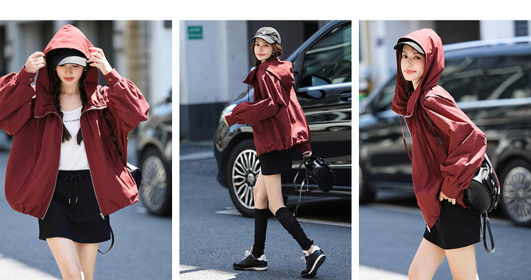 【轻量化户外】秋季运动休闲连帽泡泡袖拉链宽松遮肉短款女式外套