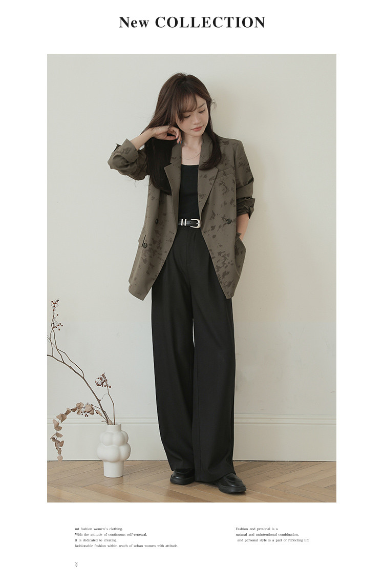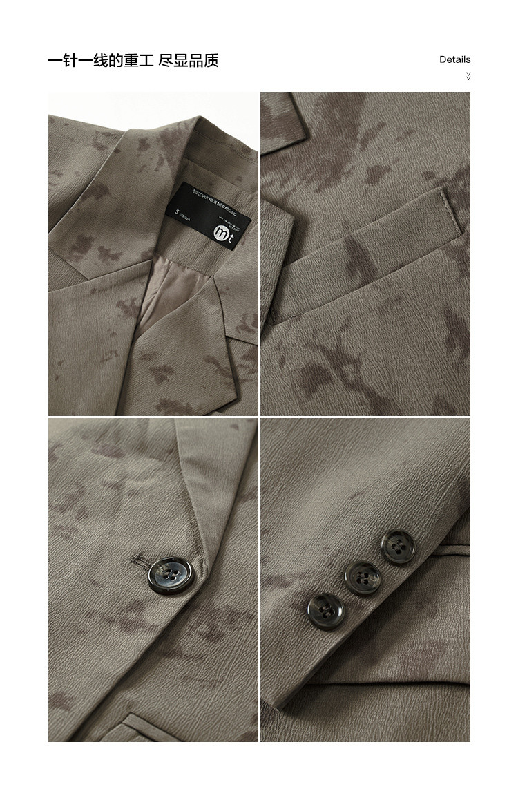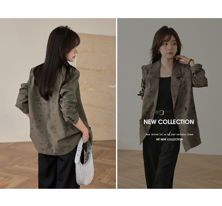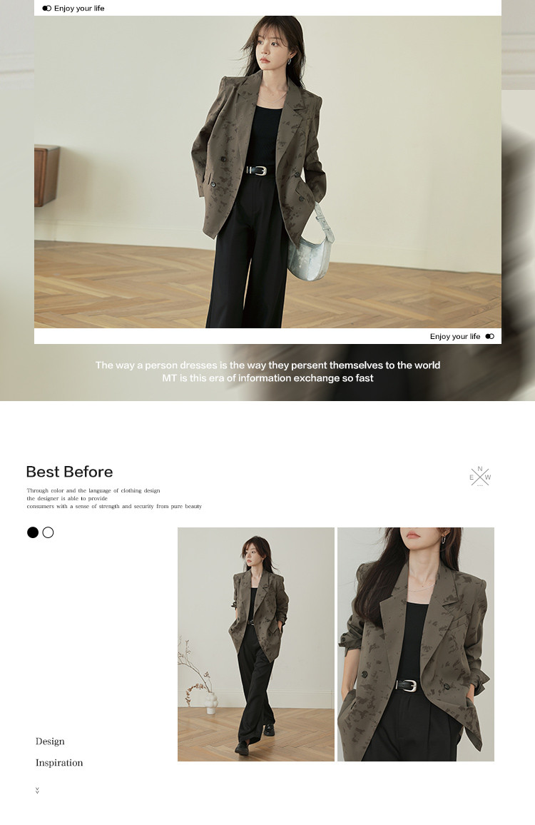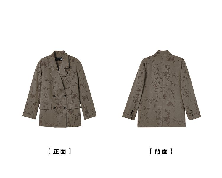 【新中式通勤风】秋肌理印花面料气质简约双排扣西装外套