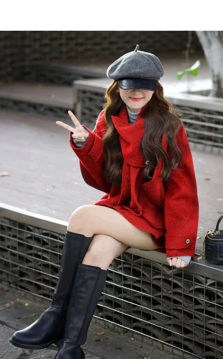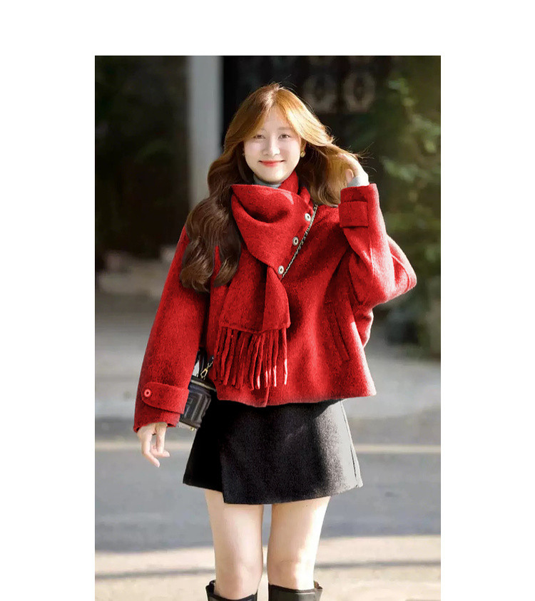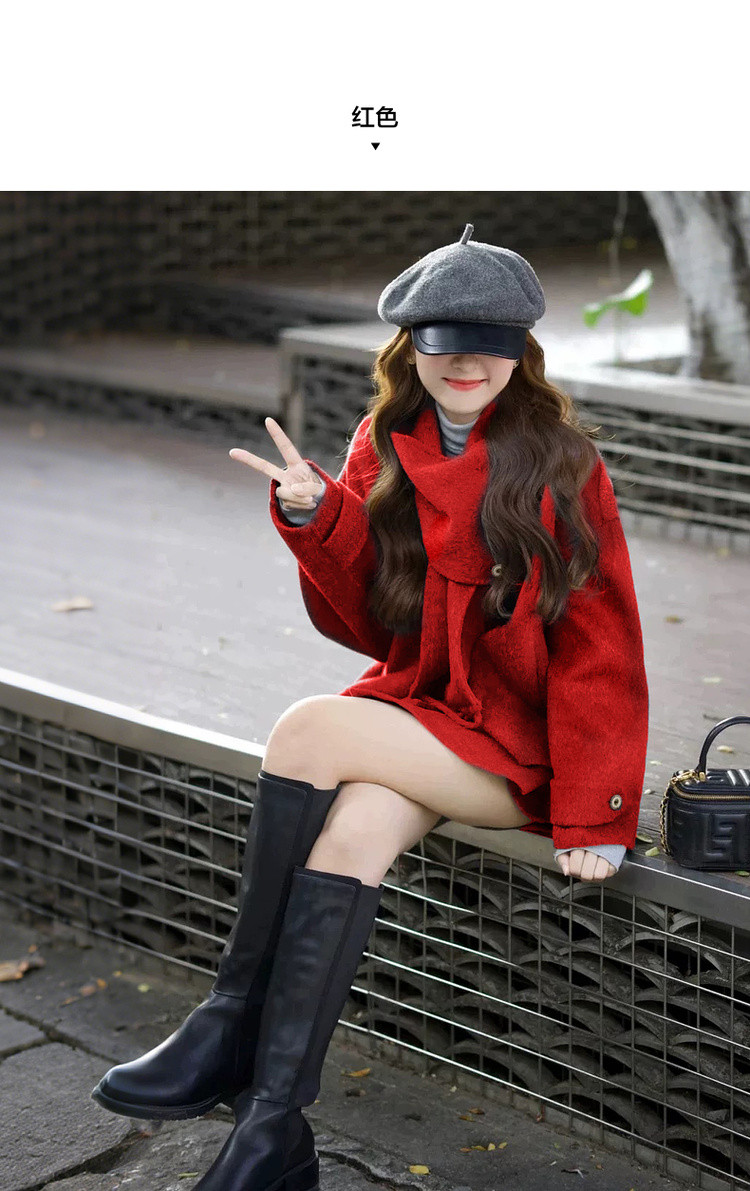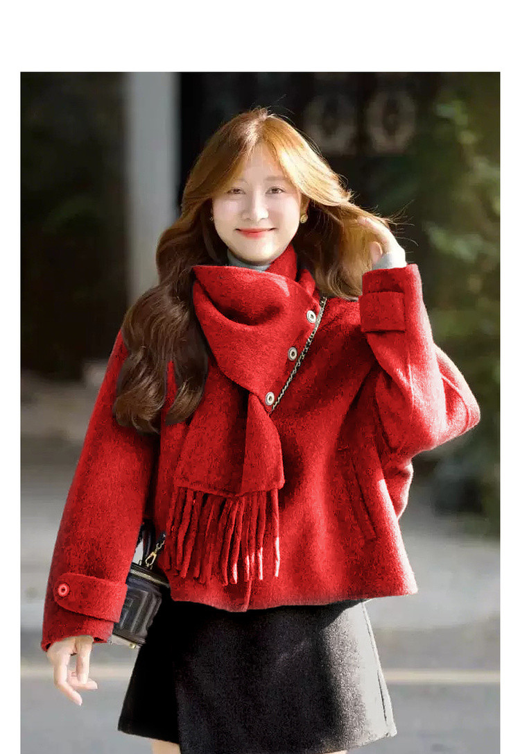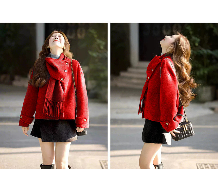 【奢暖绵羊毛】2025冬可脱卸围巾V领双面呢大衣宽松毛呢外套女短款