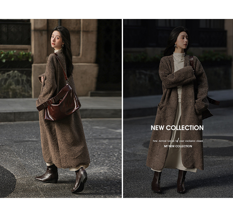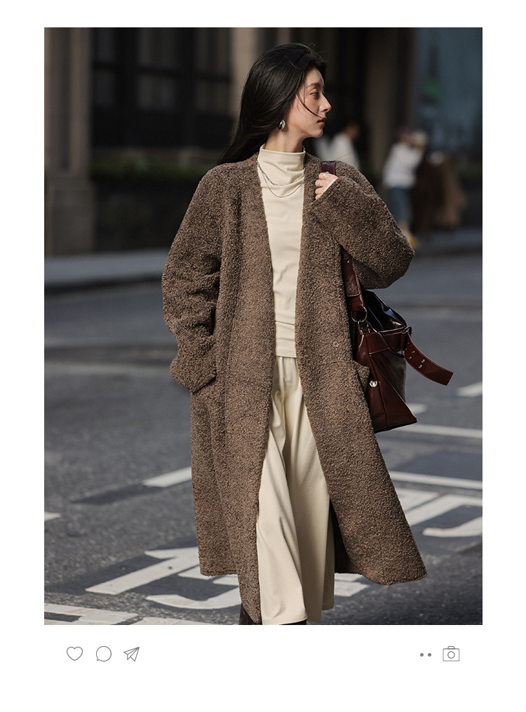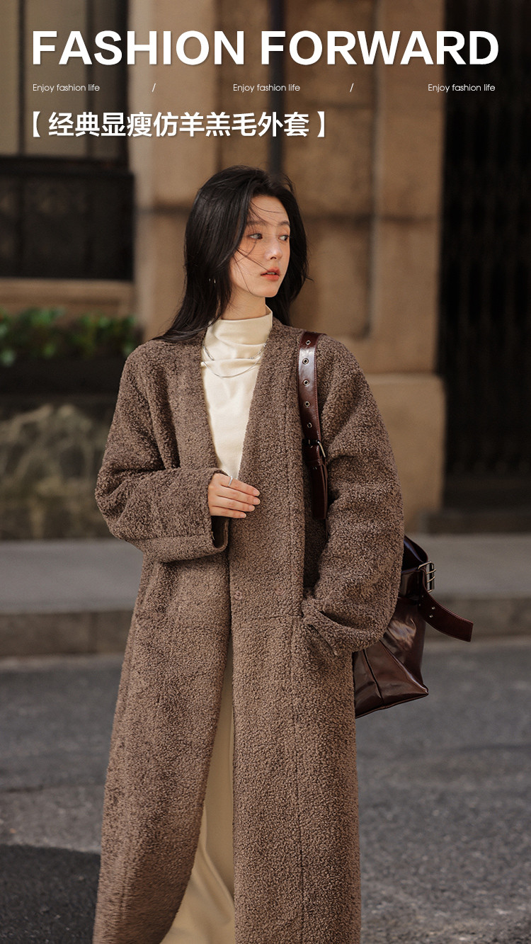 【经典气质大衣】秋款显瘦V领简约松弛感仿羊羔毛外套女
