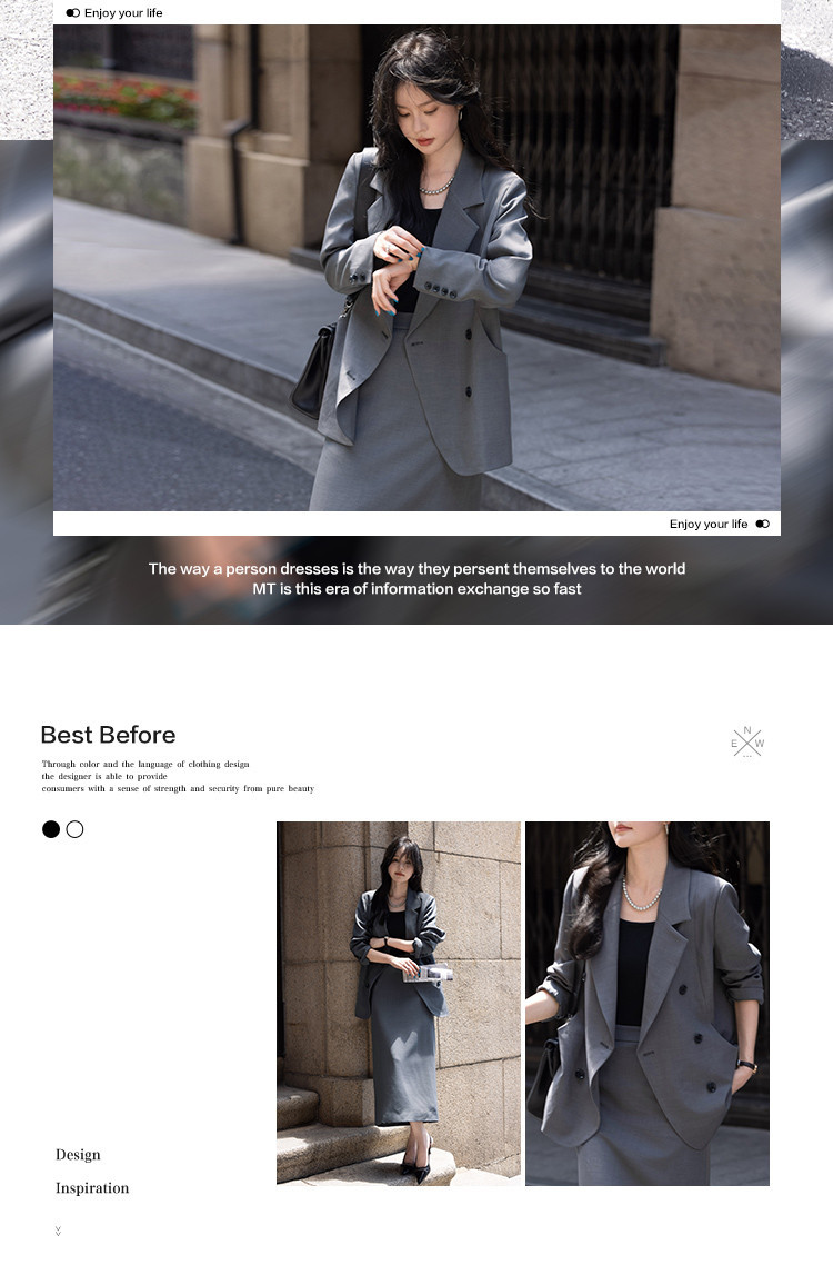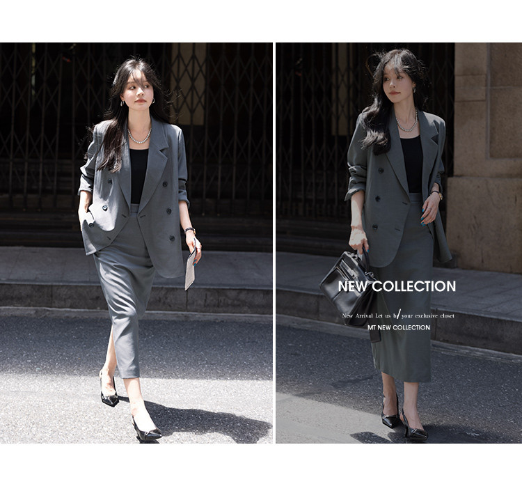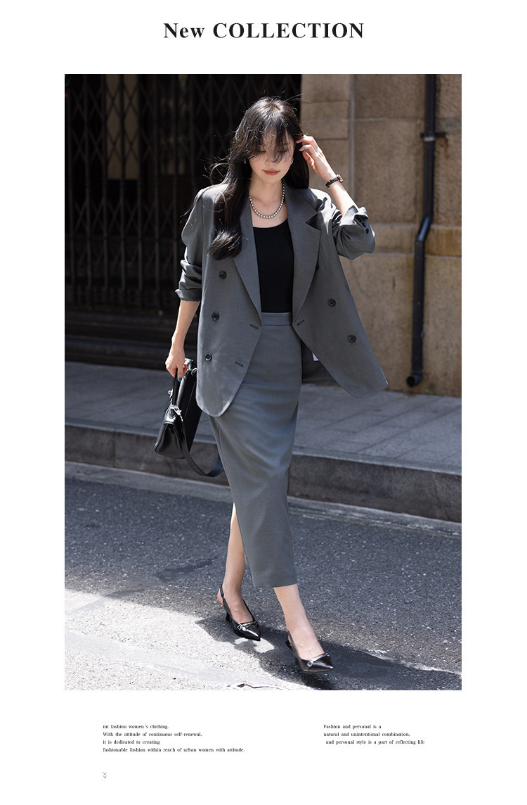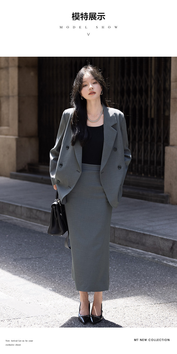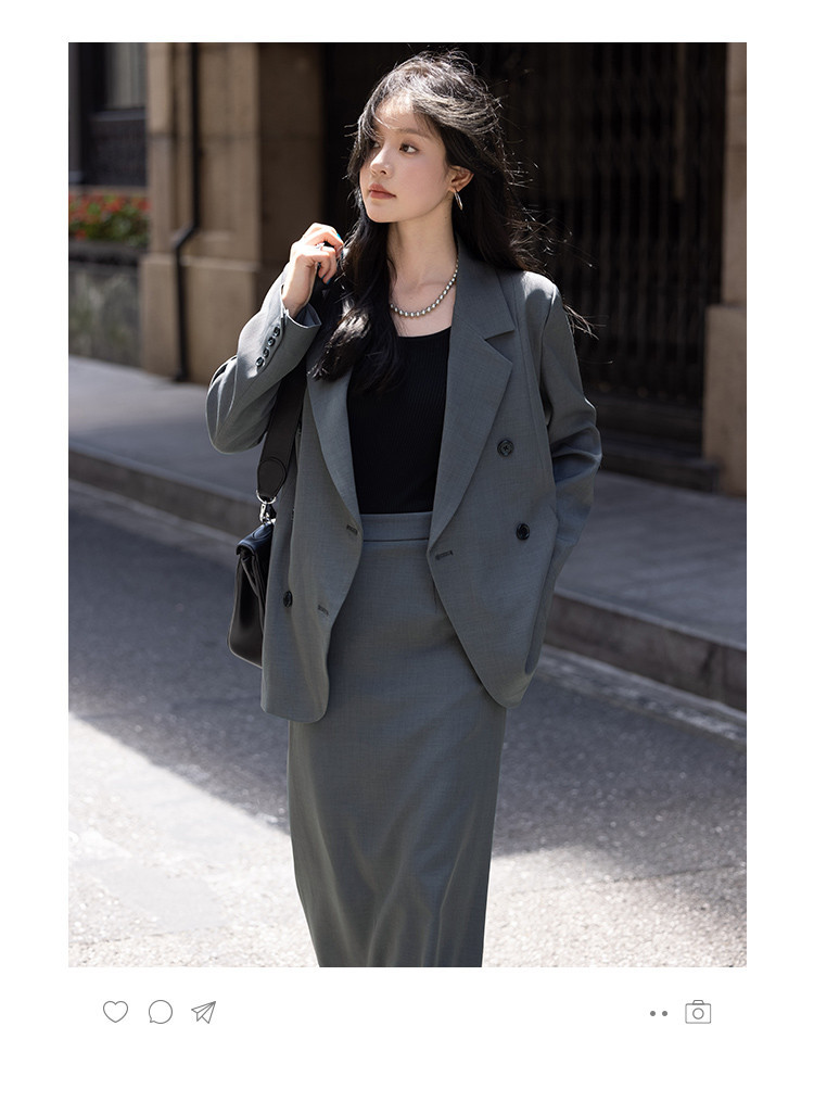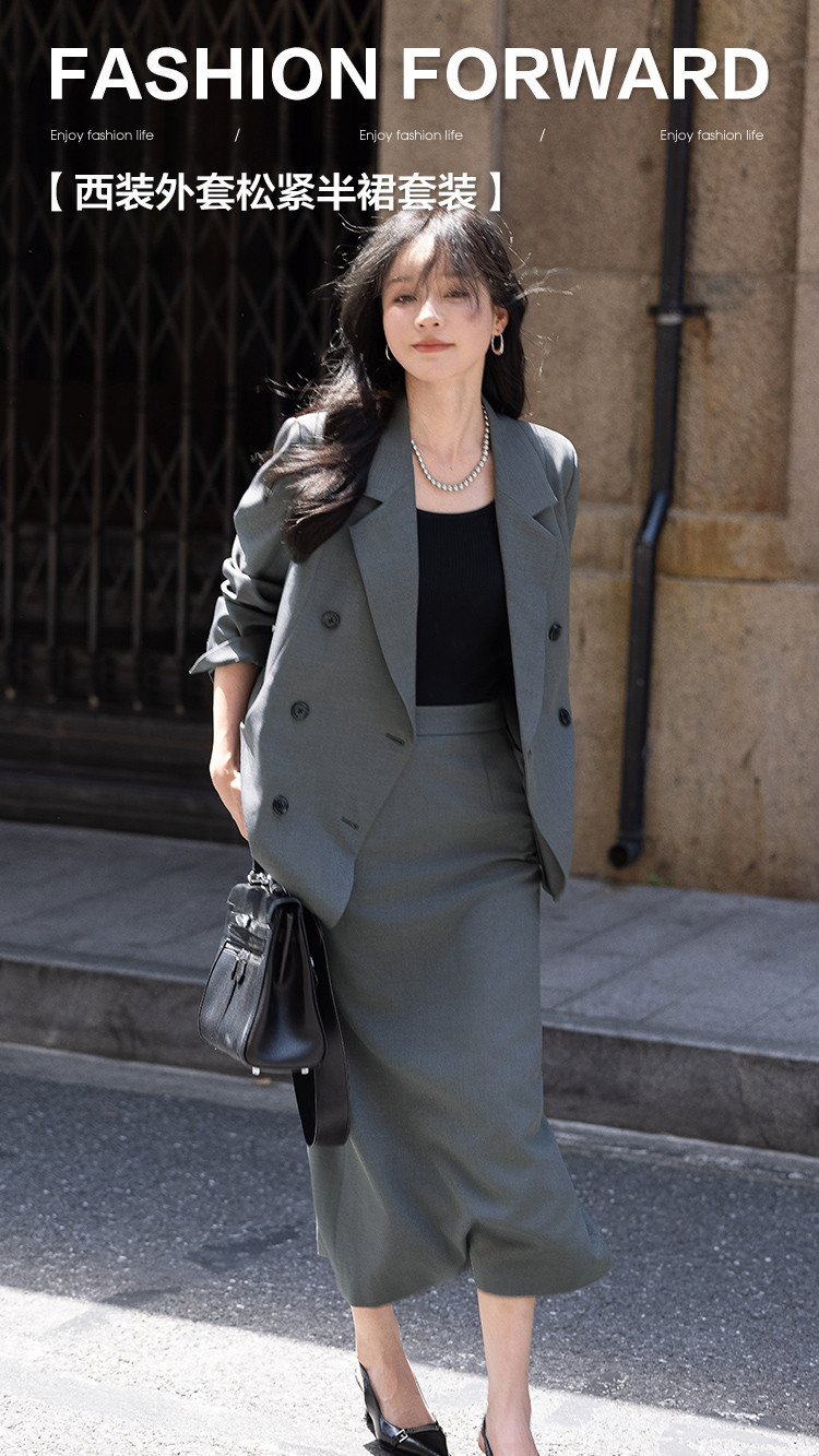 【高智感职场】秋季商务通勤套装西装外套开叉直筒半裙女式两件套