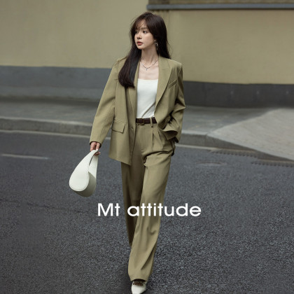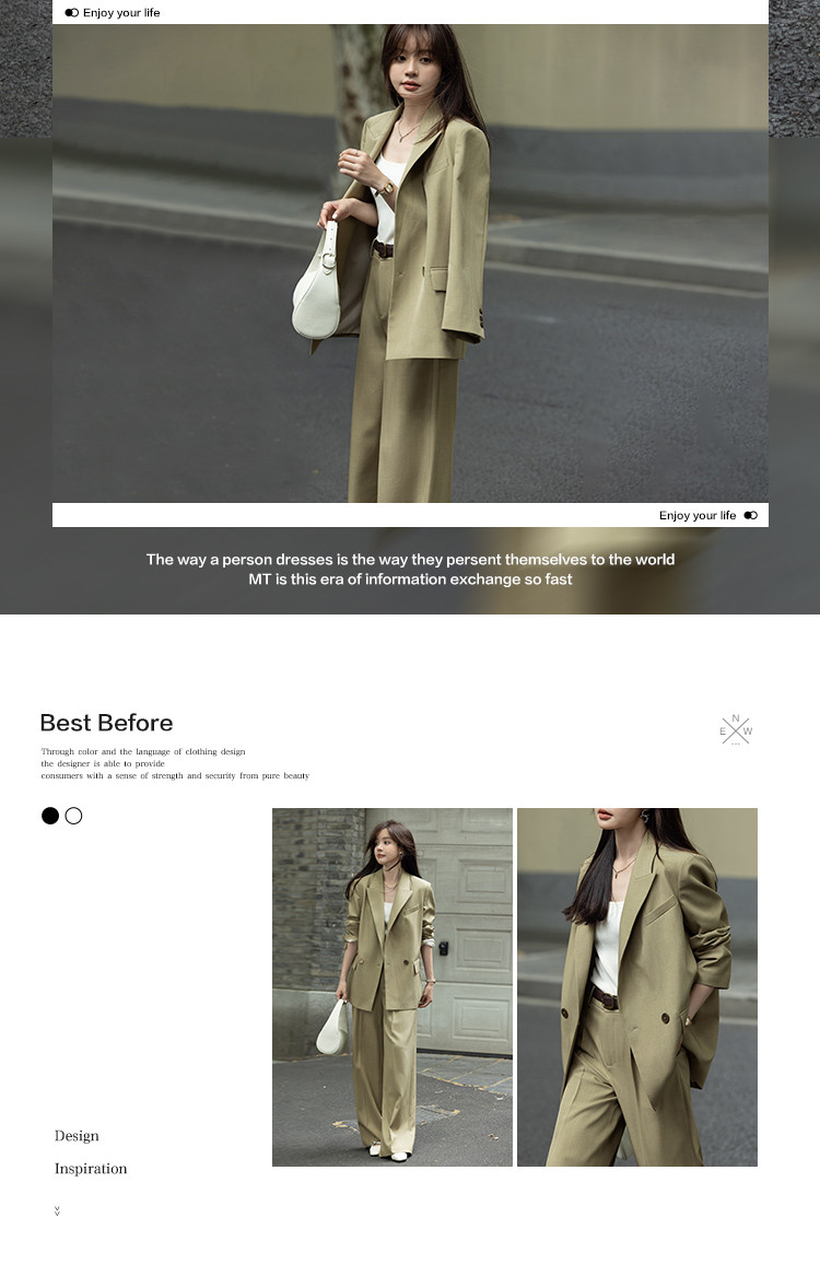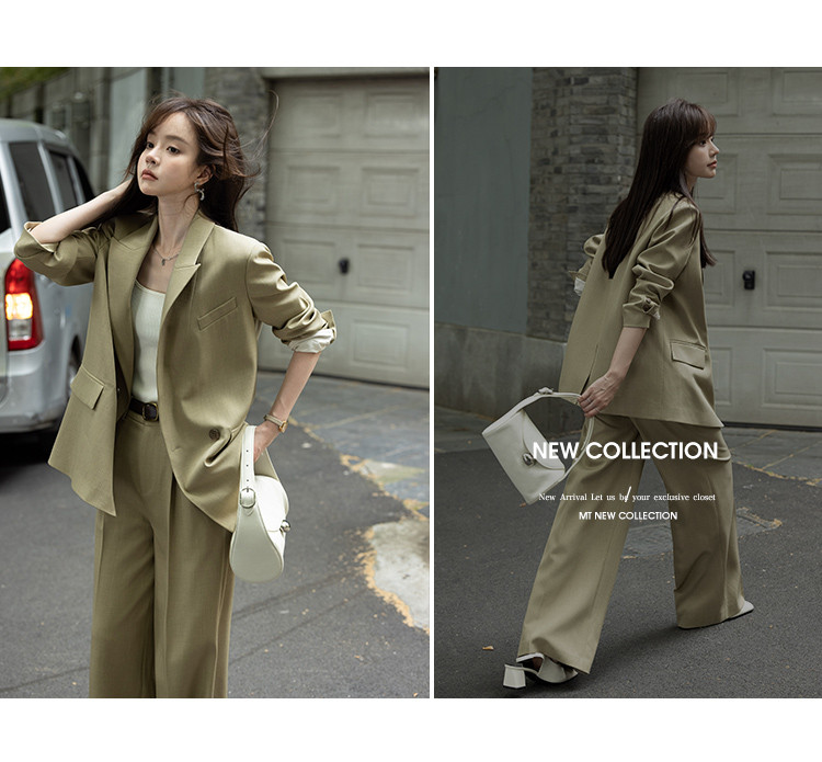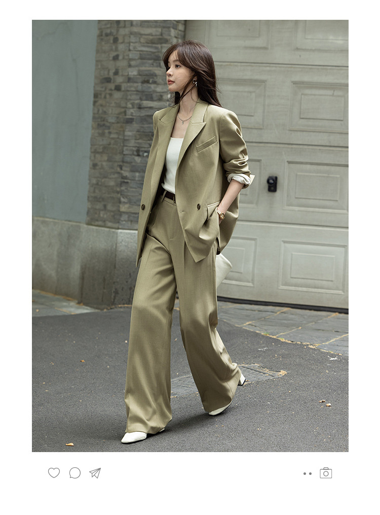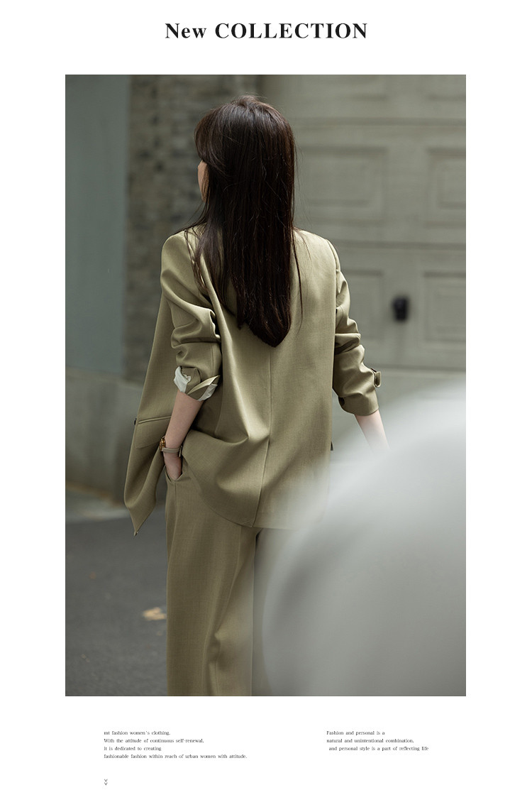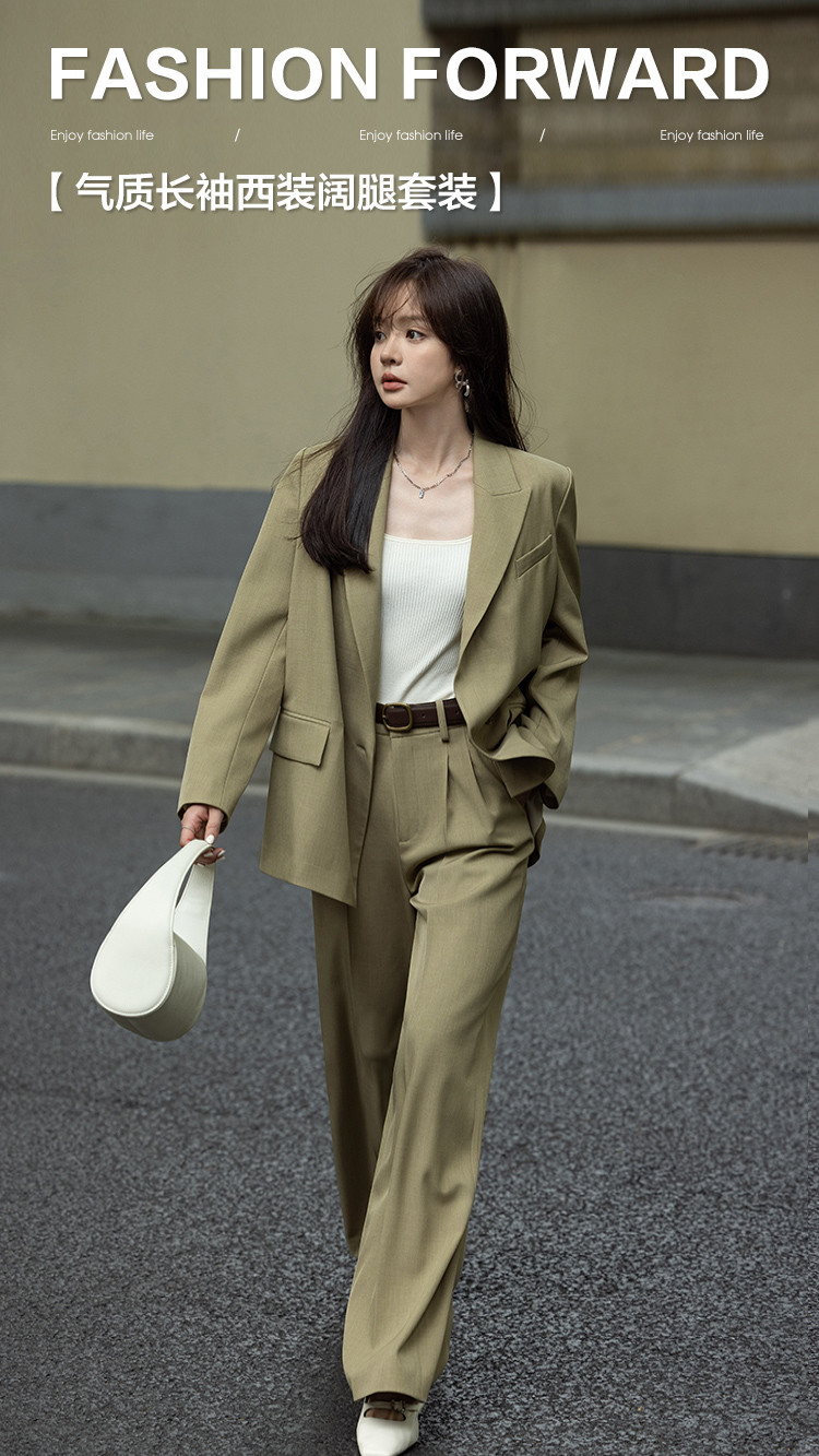 【酷飒通勤风】秋款气质纯色简约宽松长袖西装基础阔腿长裤套装