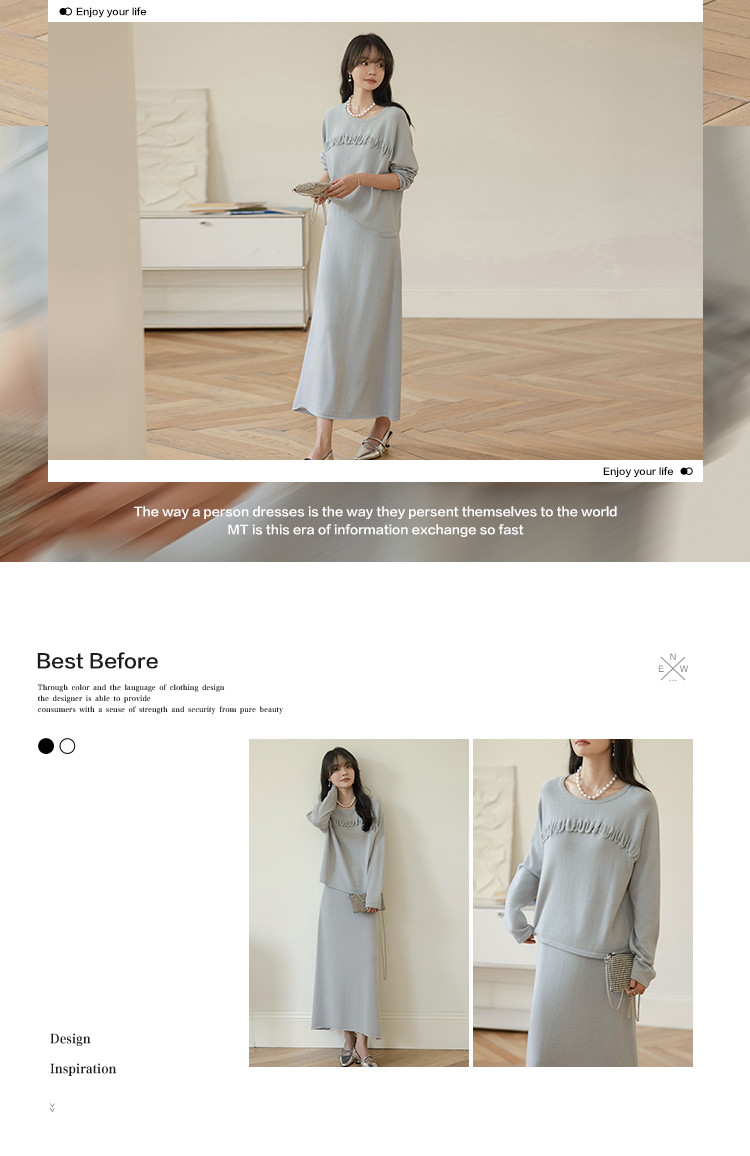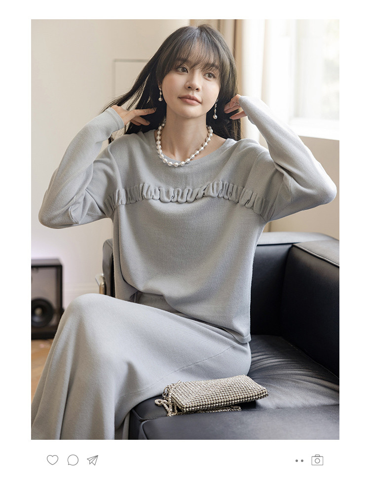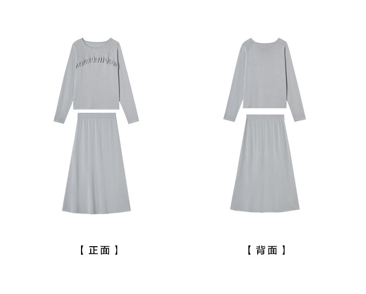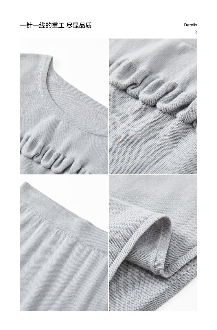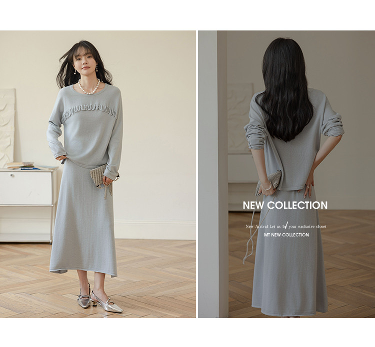 【休闲舒适风】秋款褶皱设计针织上衣字针织半裙套装
