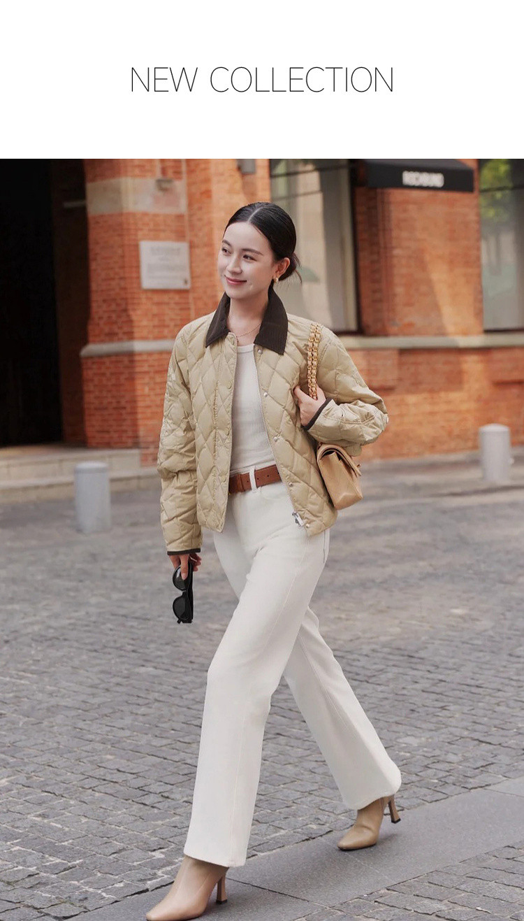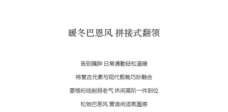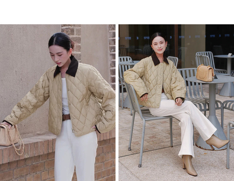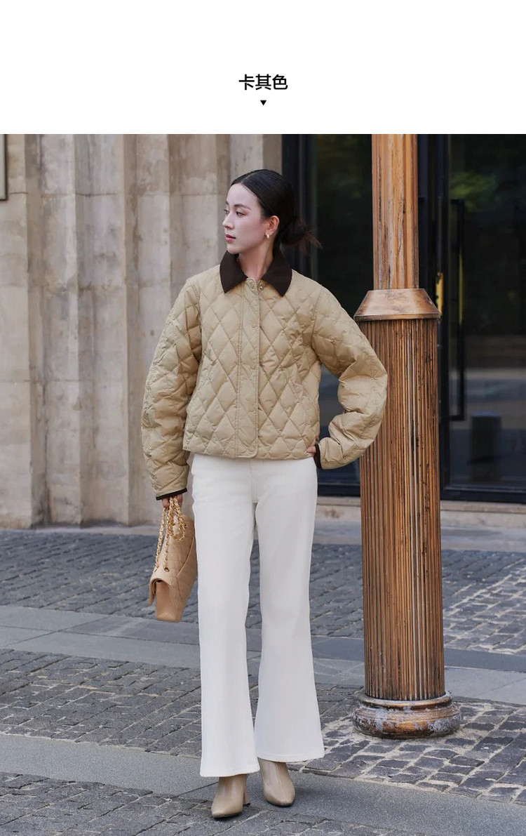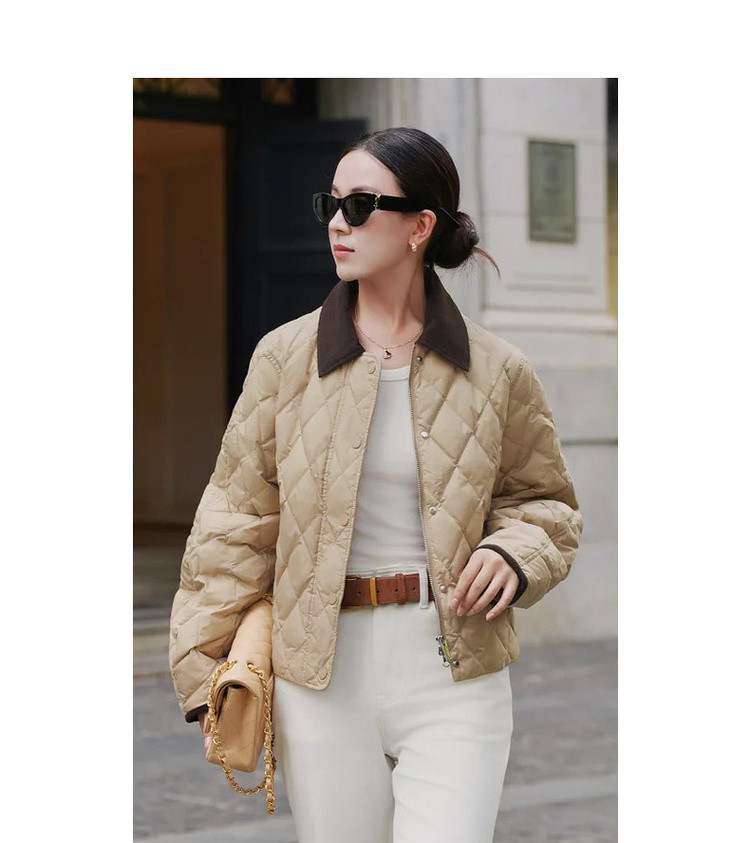 【巴恩风系列】2025冬保暖菱格绗缝棉衣拼接翻领复古小个子女式棉服