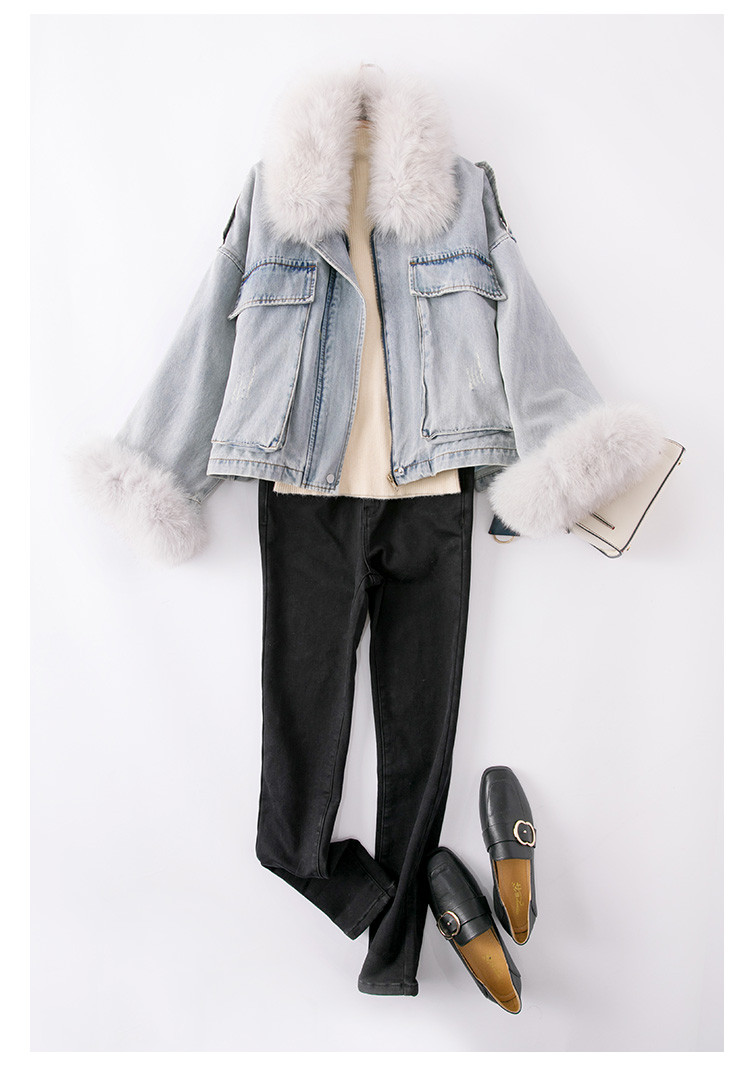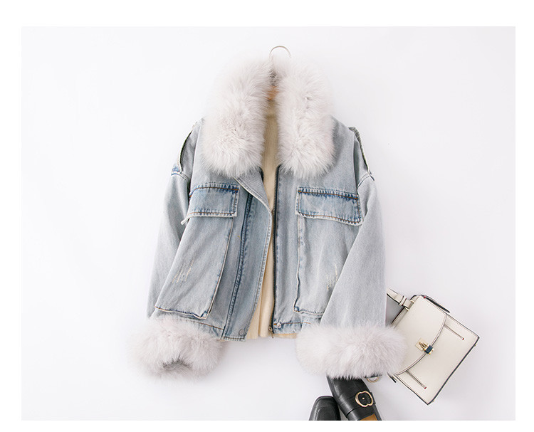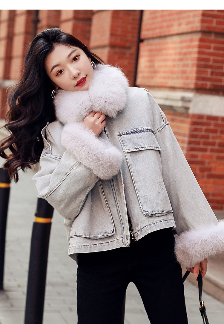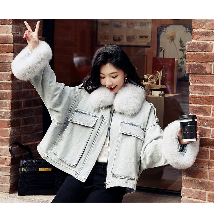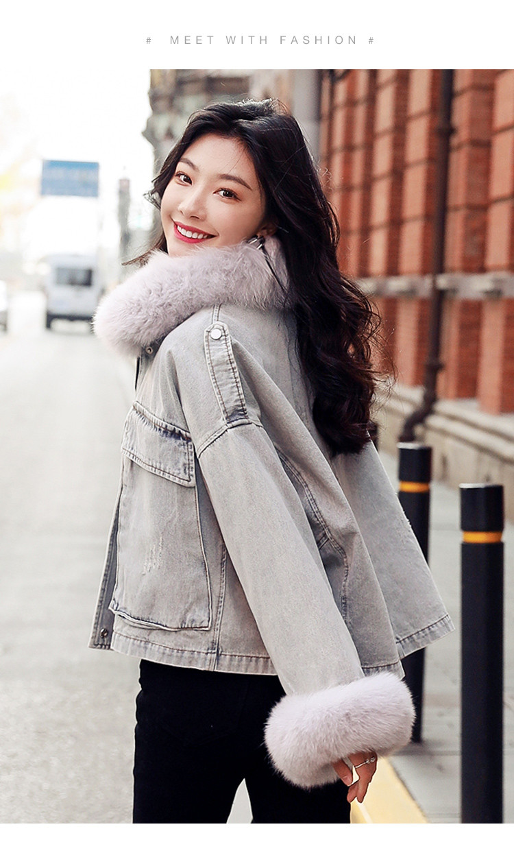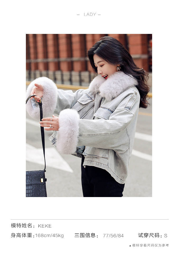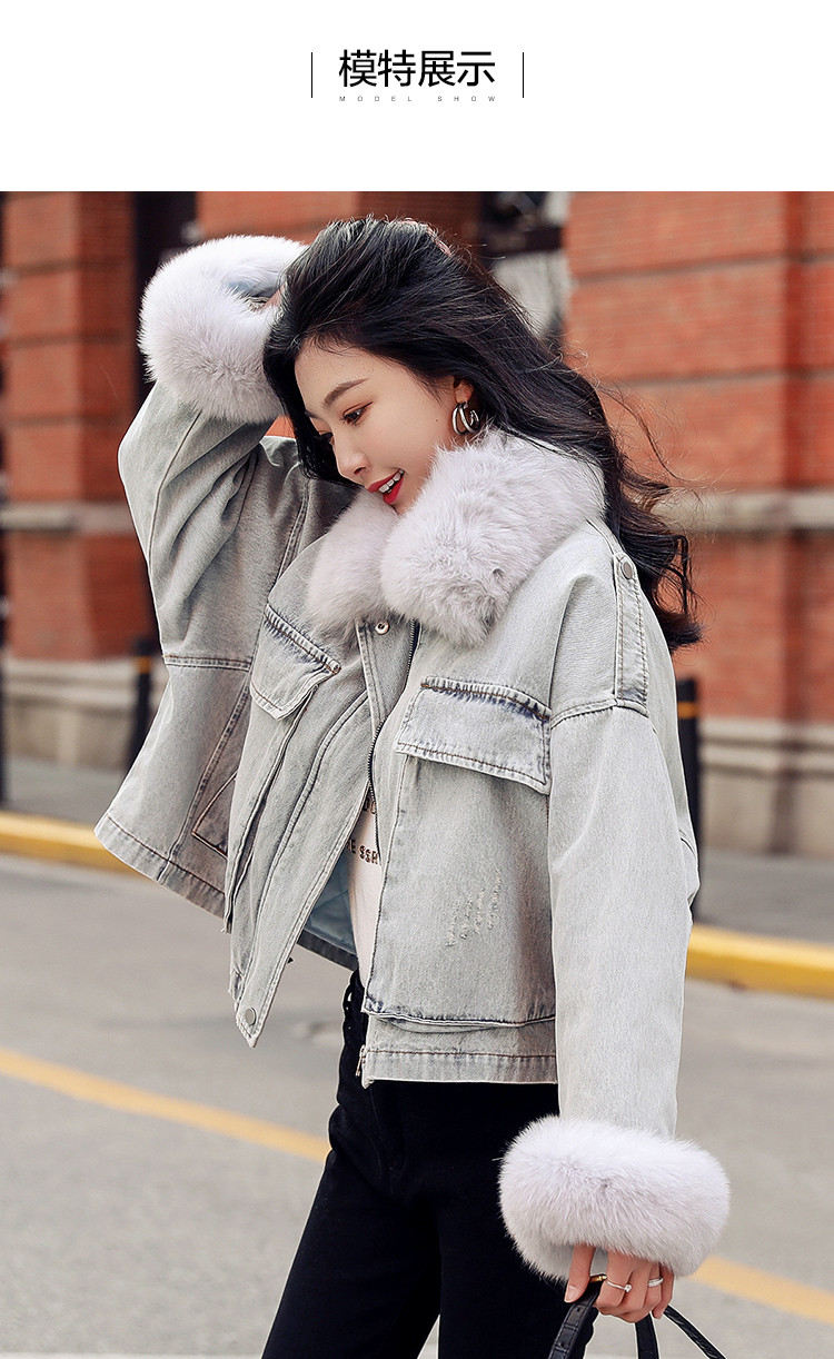 【拼接牛仔棉衣】冬季棉服女毛领高档拼接牛仔夹棉外套