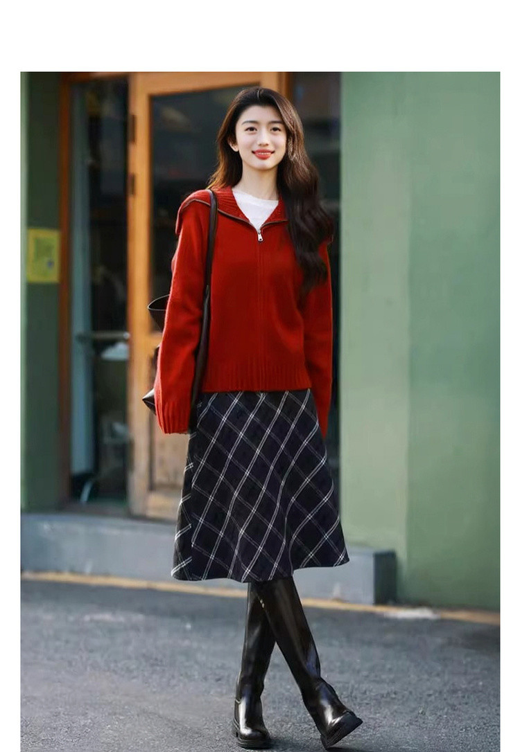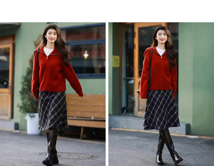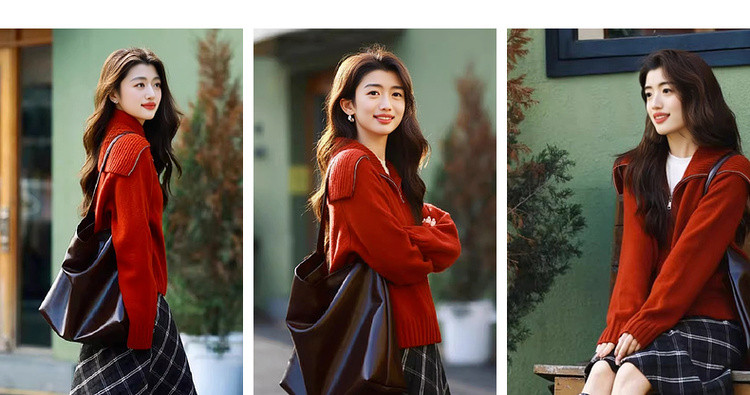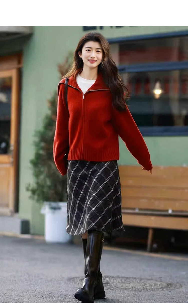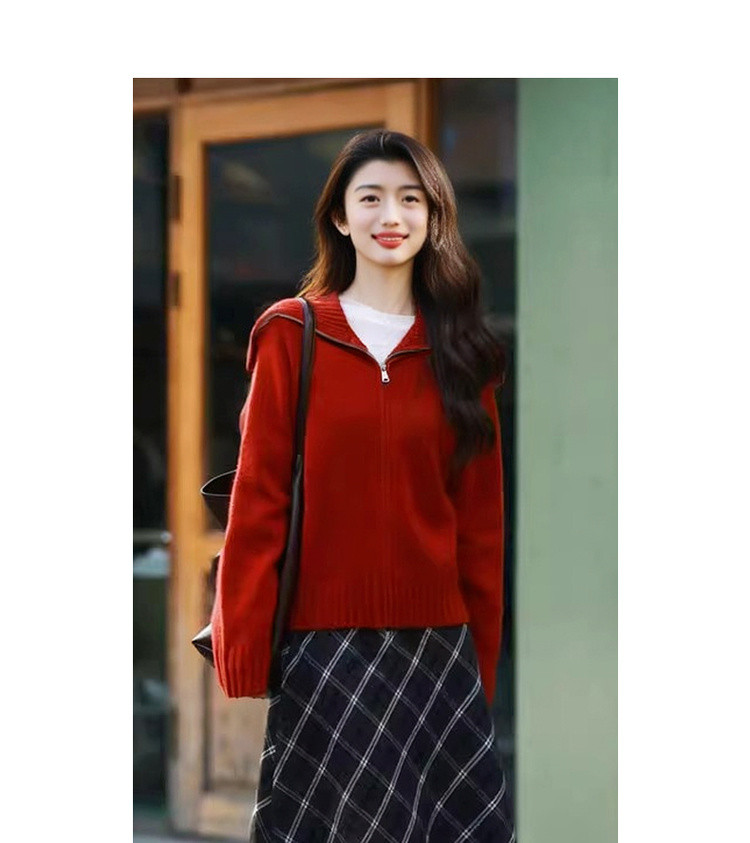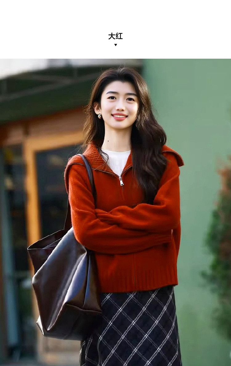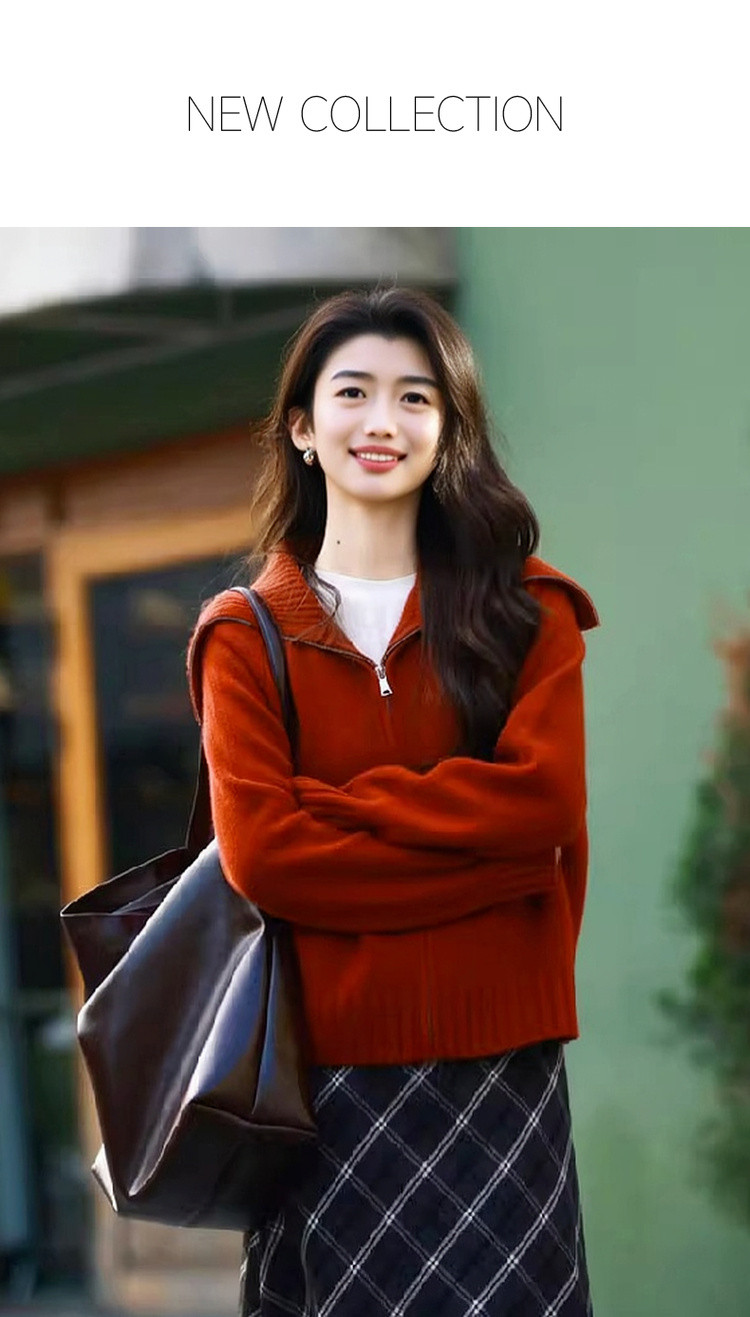 【享岁月静好】2025冬复古优雅翻领拉链开衫舒适小个子针织衫女上衣