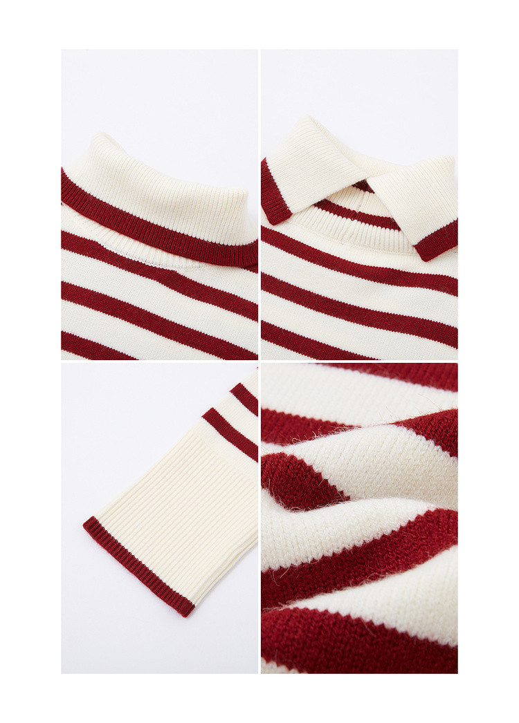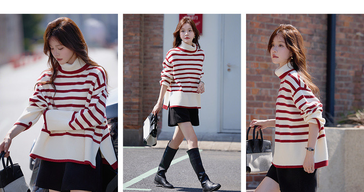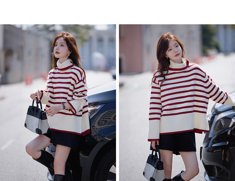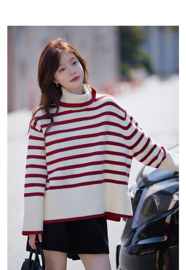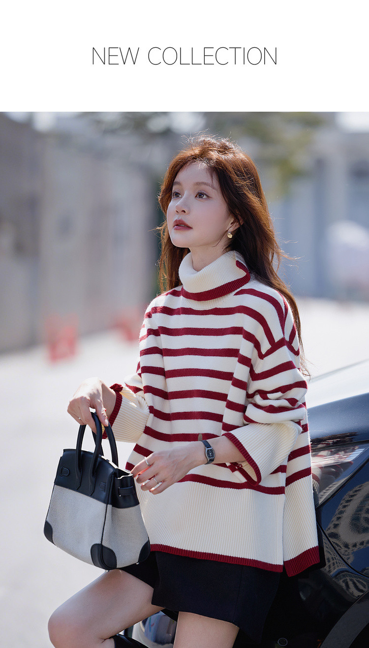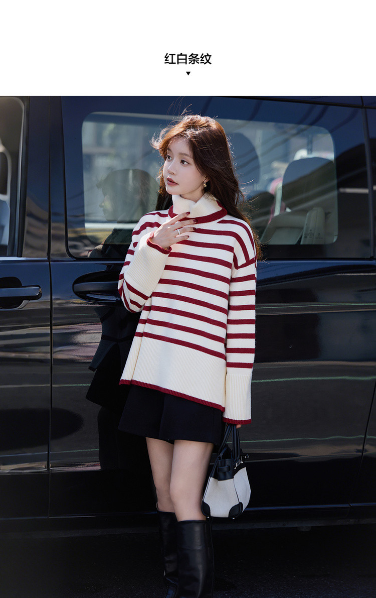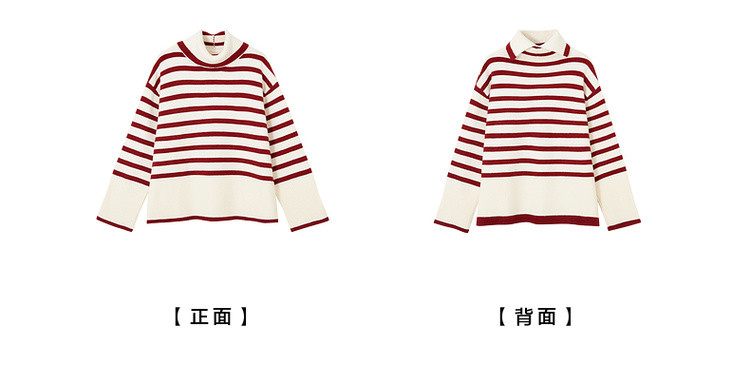 【悠享柔暖】2025冬简约撞色条纹高领线衫舒适软糯慵懒针织衫女上衣