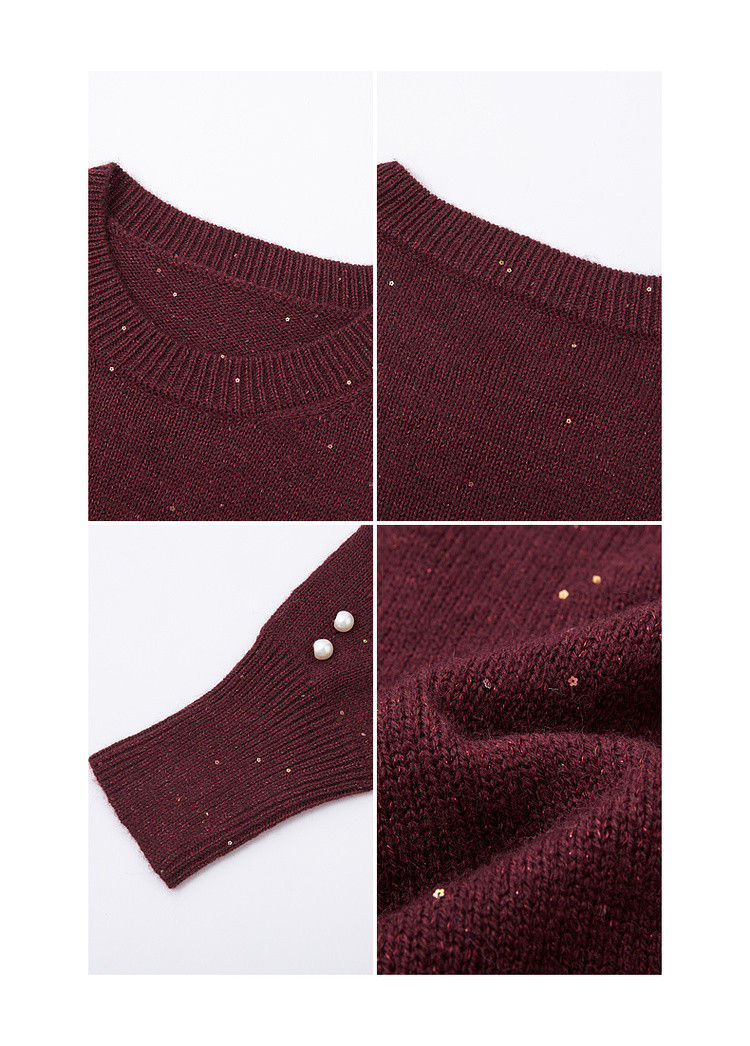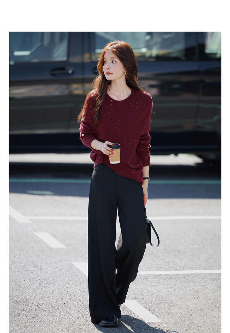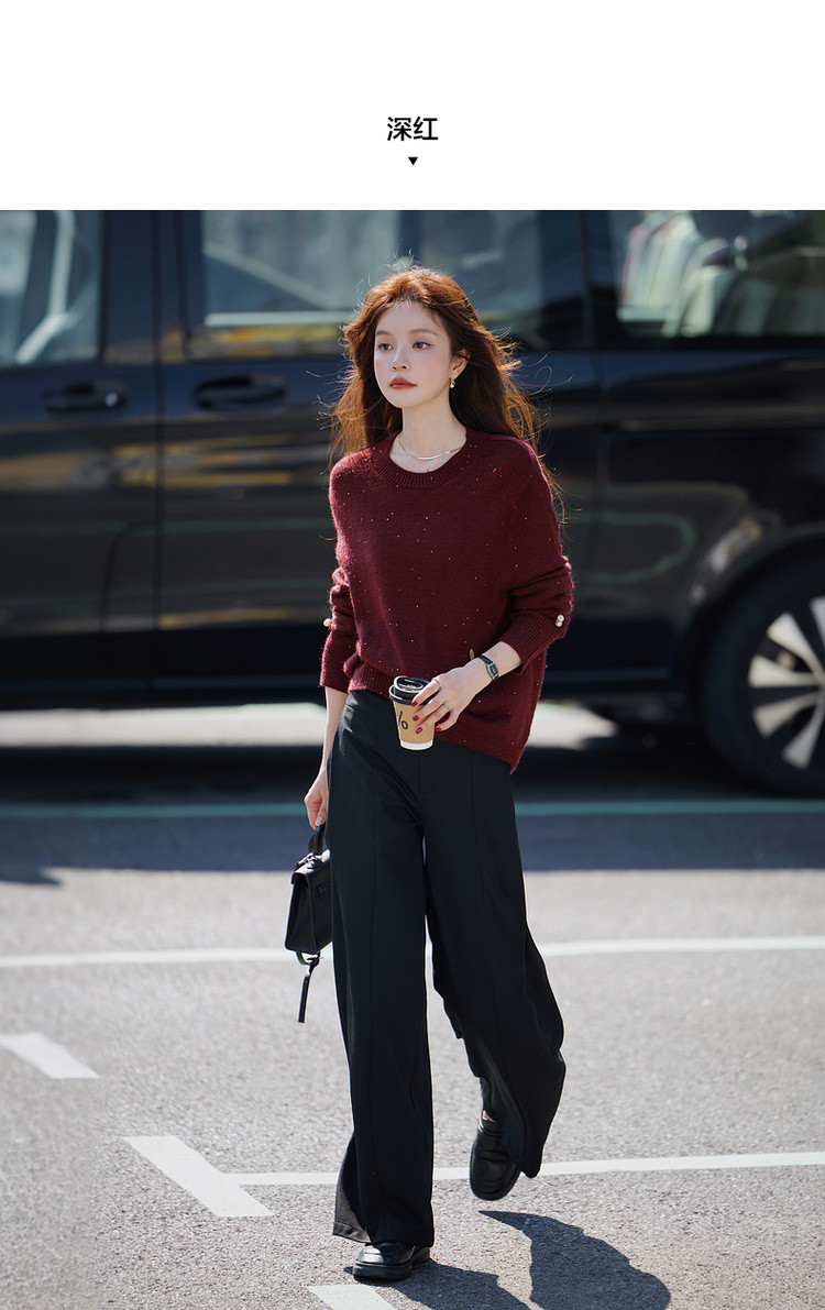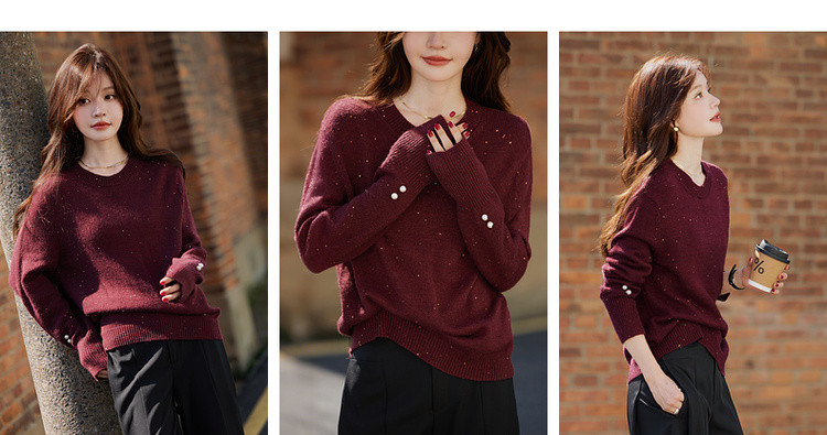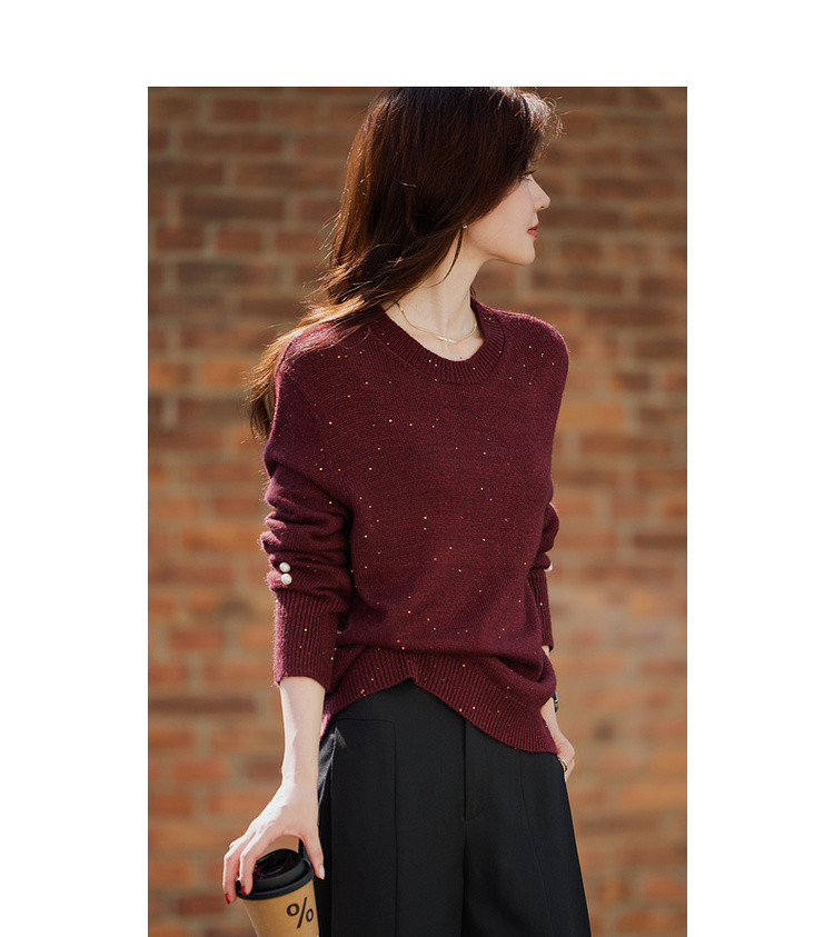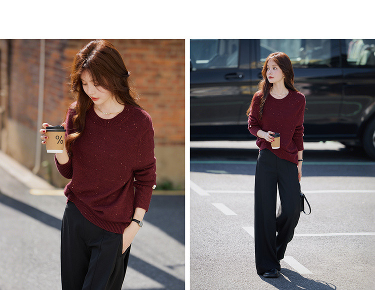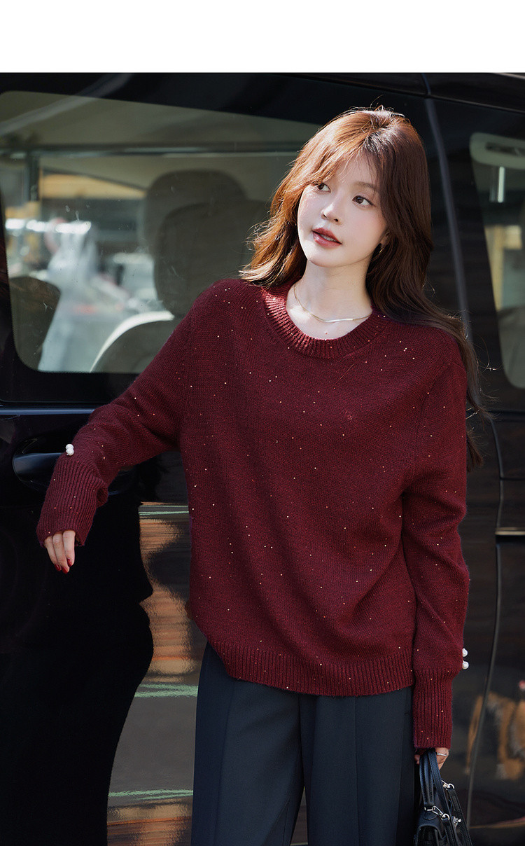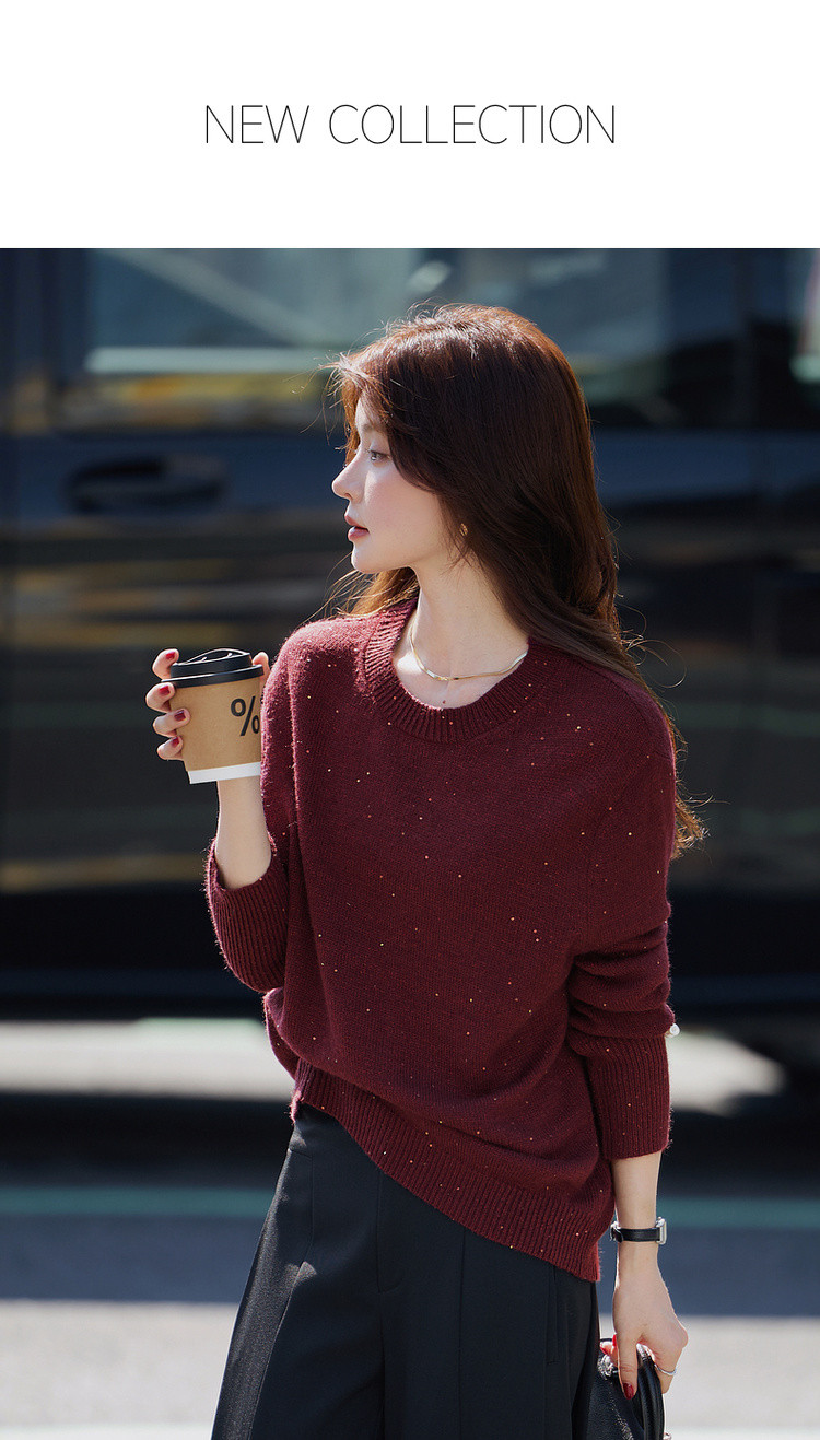【雅奢日常化】2025冬浪漫亮片圆领线衫慵懒风柔软舒适针织衫女上衣