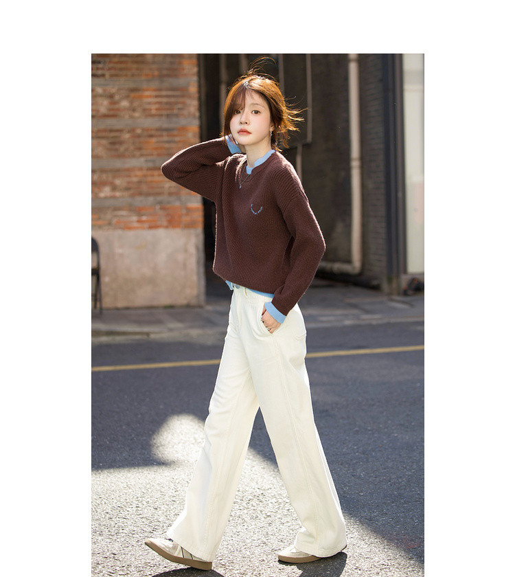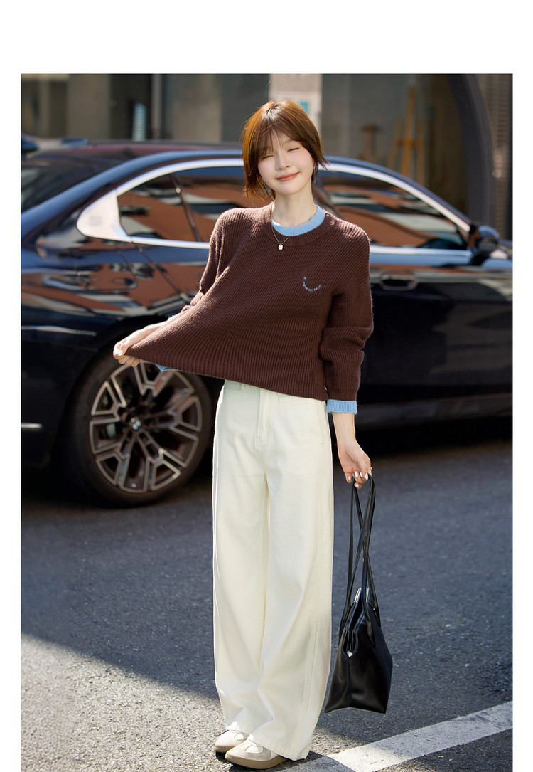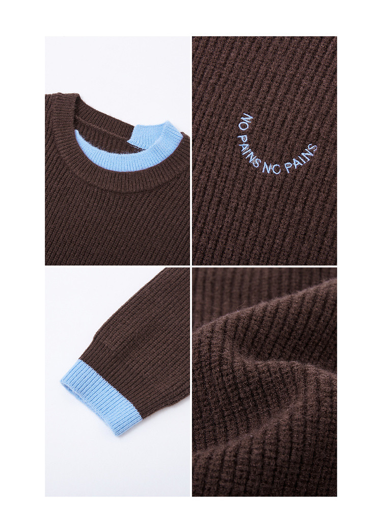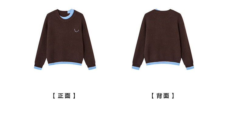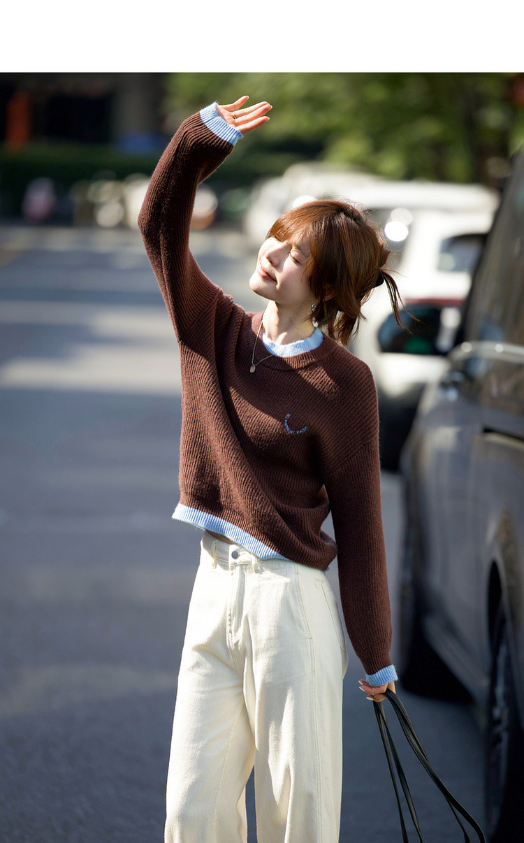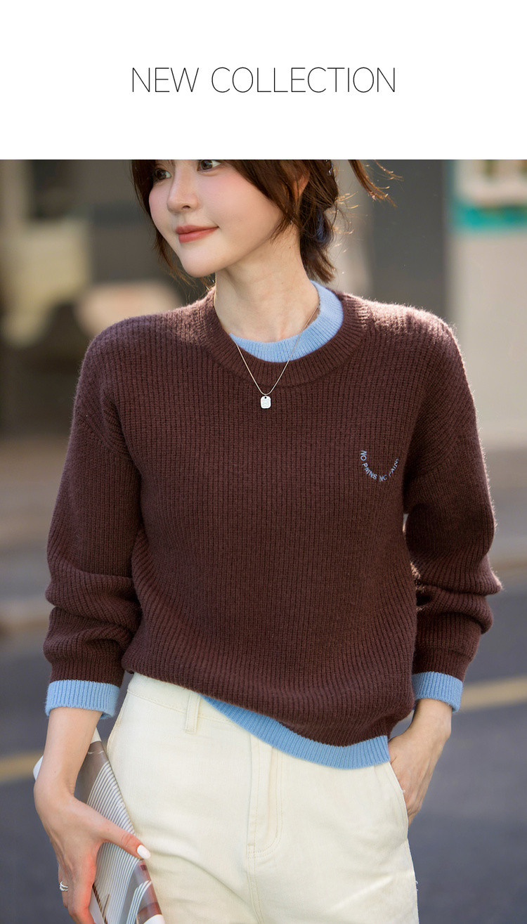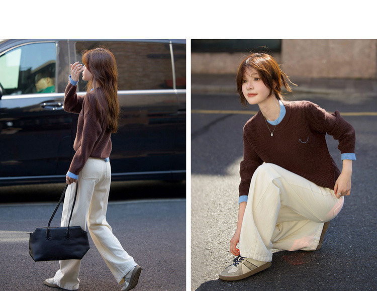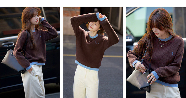 【海盐可露丽】2025冬复古风撞色领线衫舒适慵懒设计感针织衫女上衣