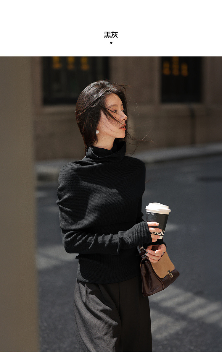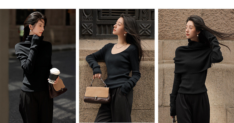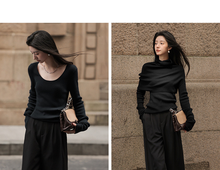 【针织两件套】秋季复古优雅不对称袖口线衫披肩高领罩衫女针织衫