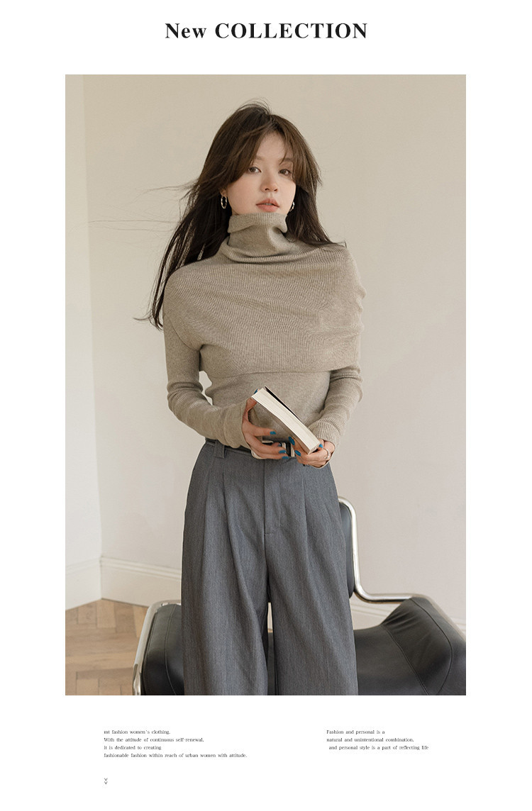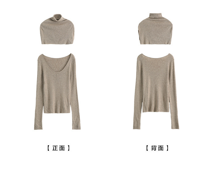 【针织两件套】秋季复古优雅不对称袖口线衫披肩高领罩衫女针织衫