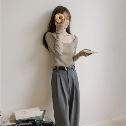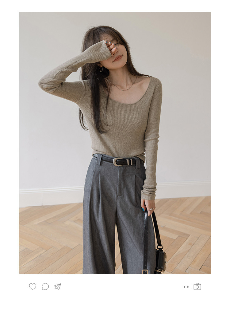 【空气慕斯打底】秋季艺术感线条印花圆领打底衫正肩修身女式t恤