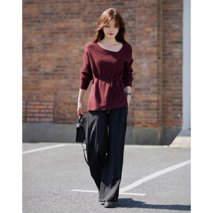 【静奢全绵羊毛】秋季气质通勤U领线衫轻薄舒弹遮肉针织衫女上衣