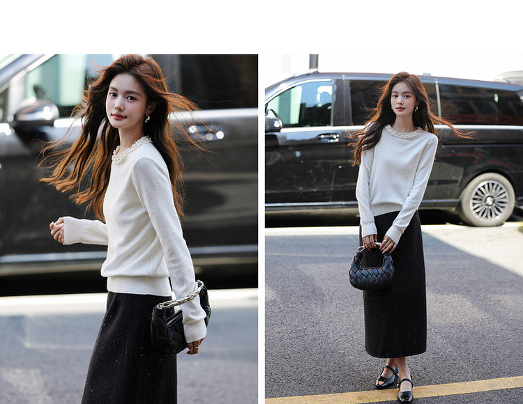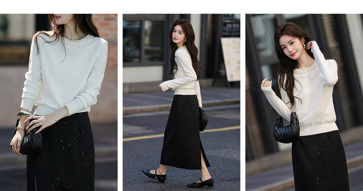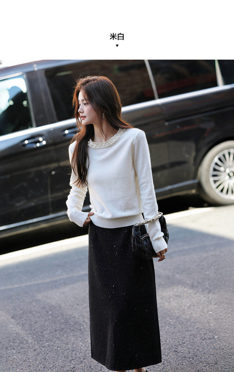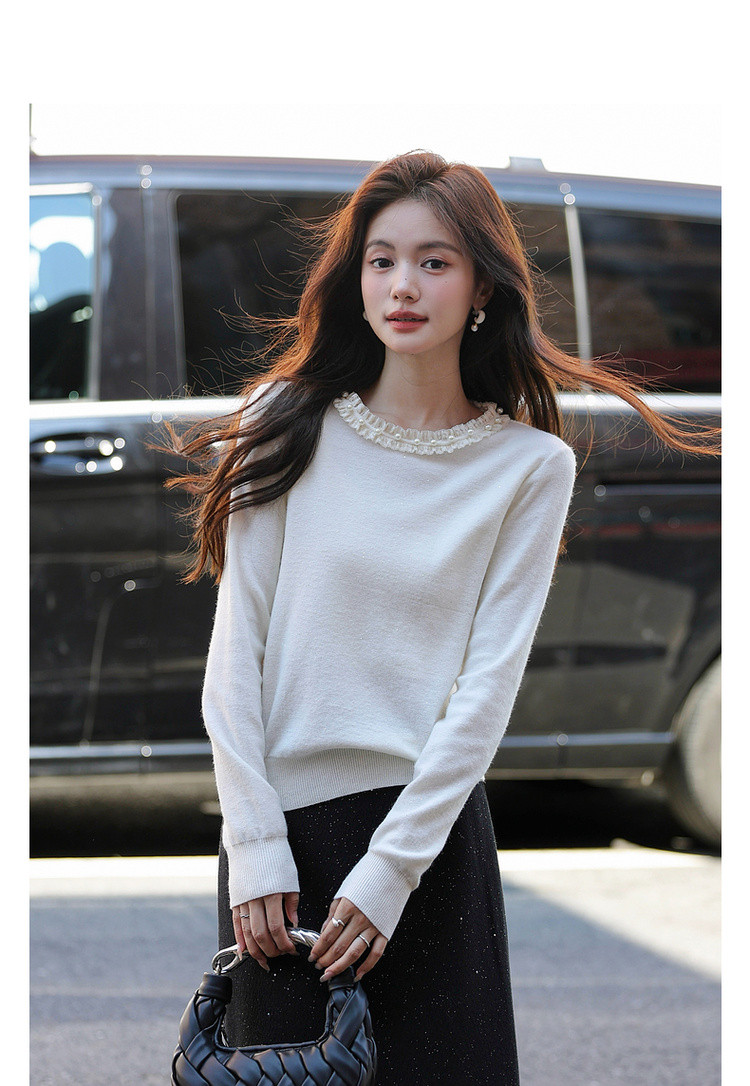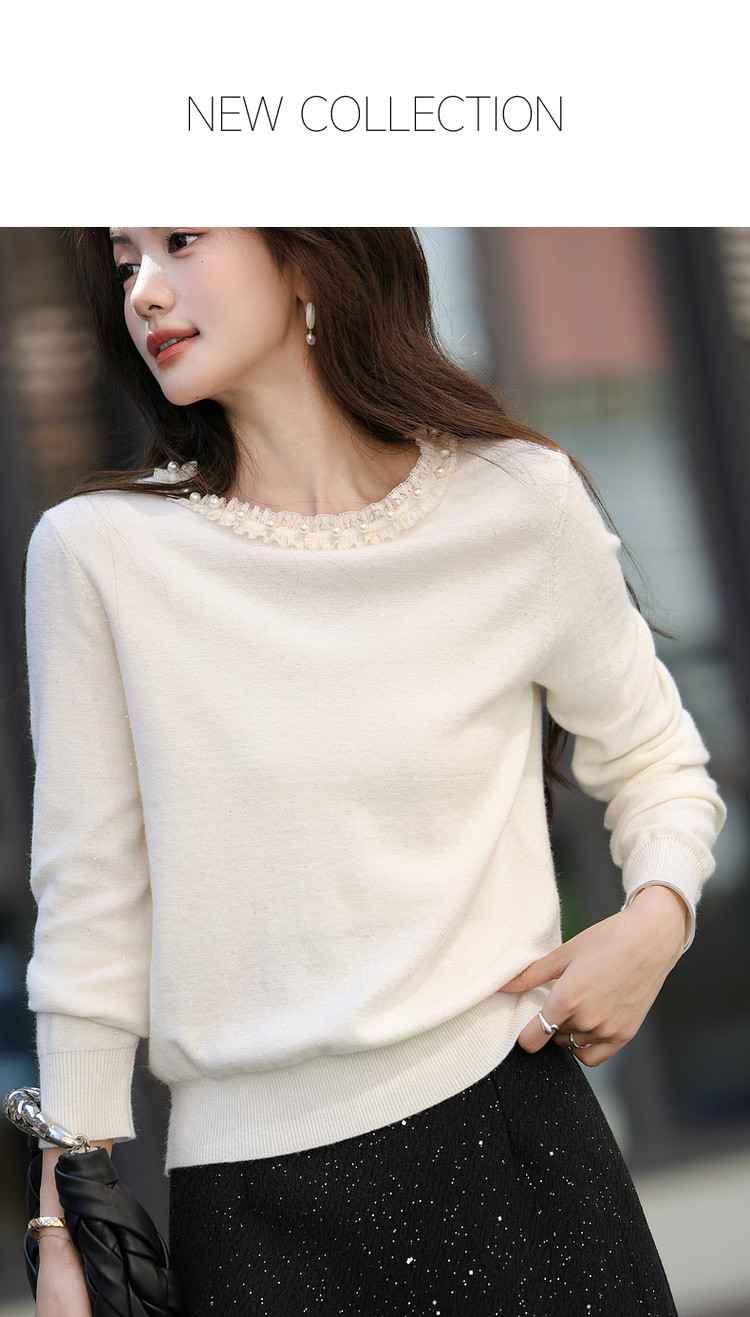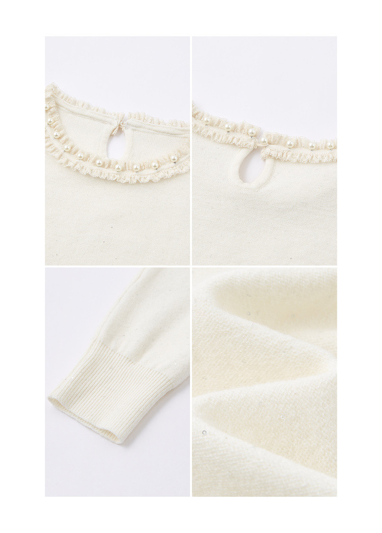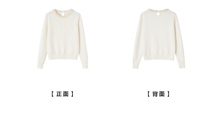 【又是暖云天】秋季甜美风珍珠装饰圆领线衫气质亮片针织衫女上衣