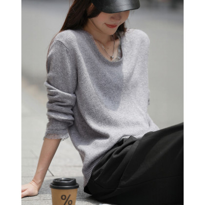 【舒暖绵羊毛】秋季静奢风拼接V领线衫温柔慵懒宽松针织衫女上衣