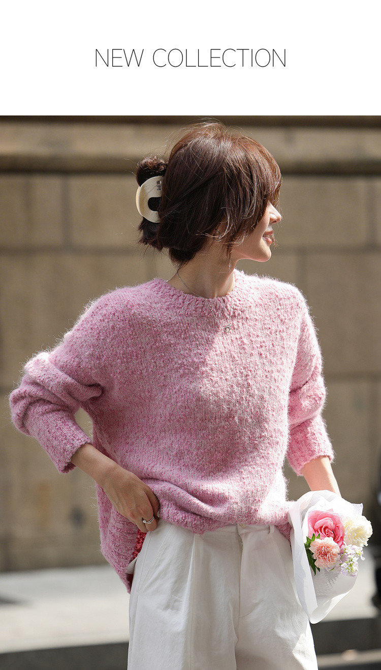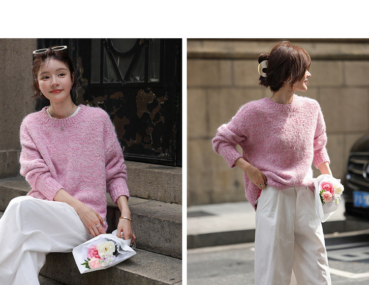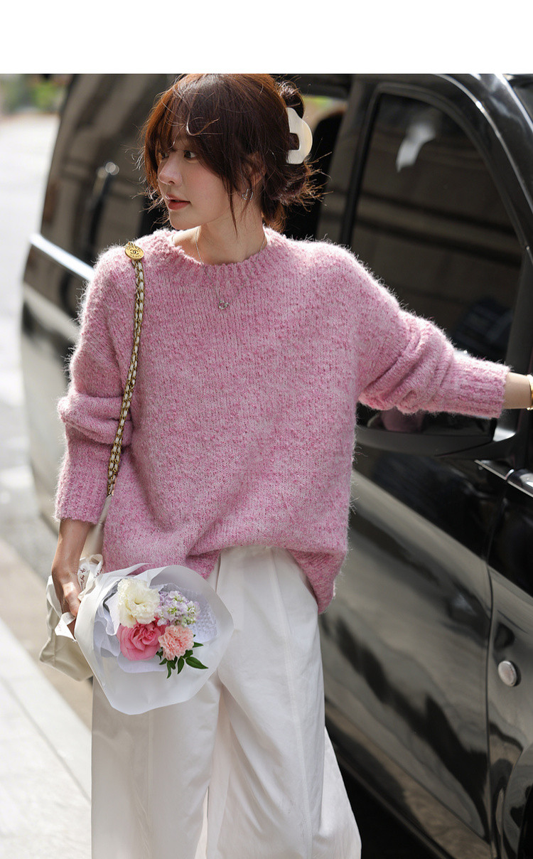 【花式豆豆纱】秋季韩风圆领线衫慵懒风软糯含绵羊毛针织衫女上衣