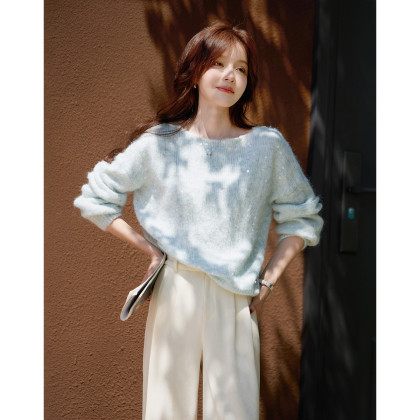 【含蓬松绵羊毛】秋季气质亮片圆领线衫慵懒软糯遮肉针织衫女上衣