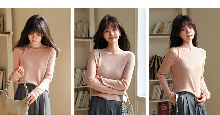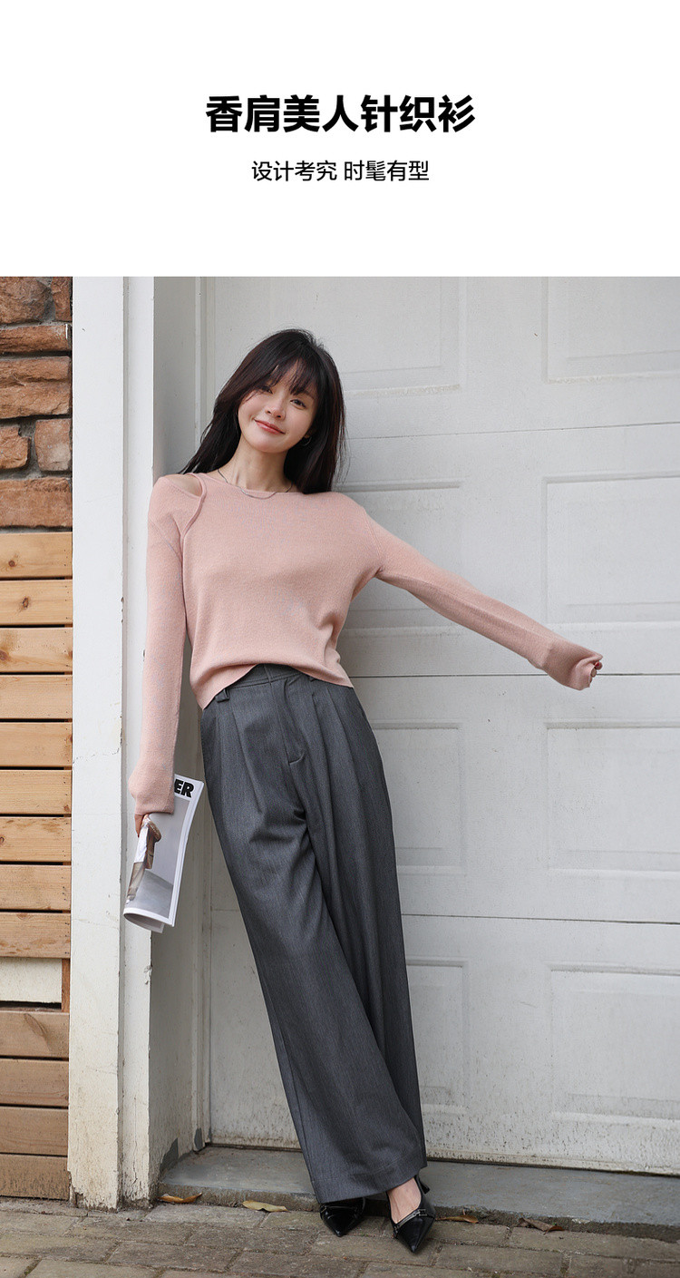 【蕴含绵羊毛】秋季温柔名媛风镂空长袖线衫舒适藏肉针织衫女上衣