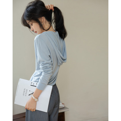 【清冷系低饱和穿搭】秋季法式轻熟帽领线衫遮肉松弛针织衫女上衣