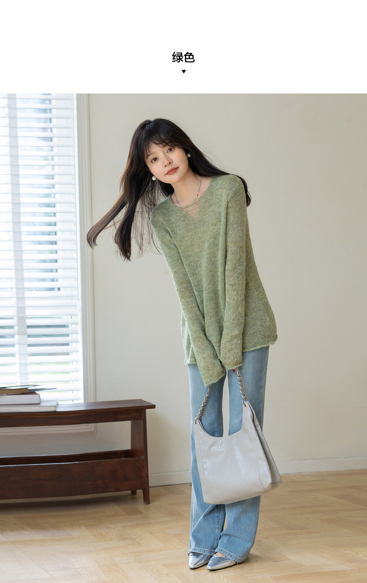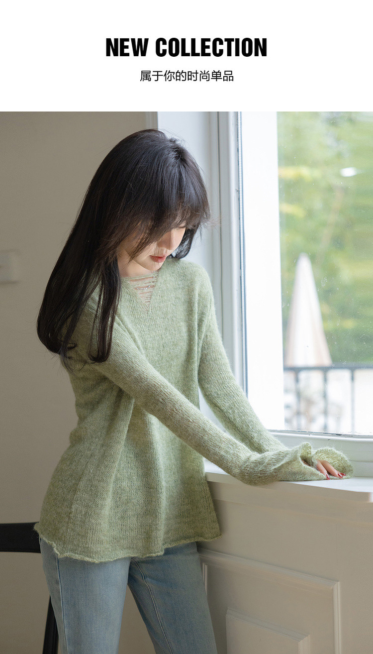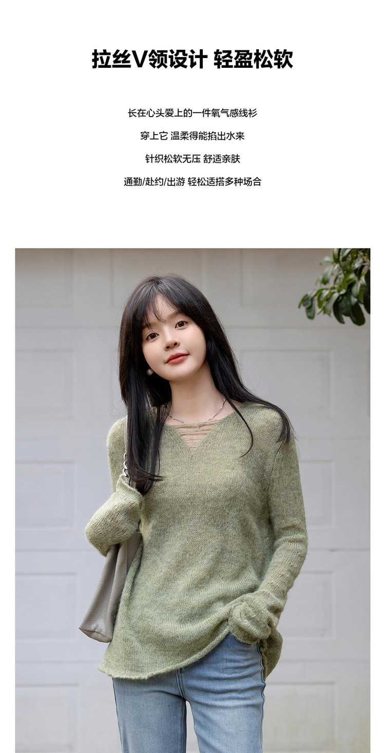 【温柔奶油甜心】秋季慵懒法式V领线衫含绵羊毛遮肉针织衫女上衣