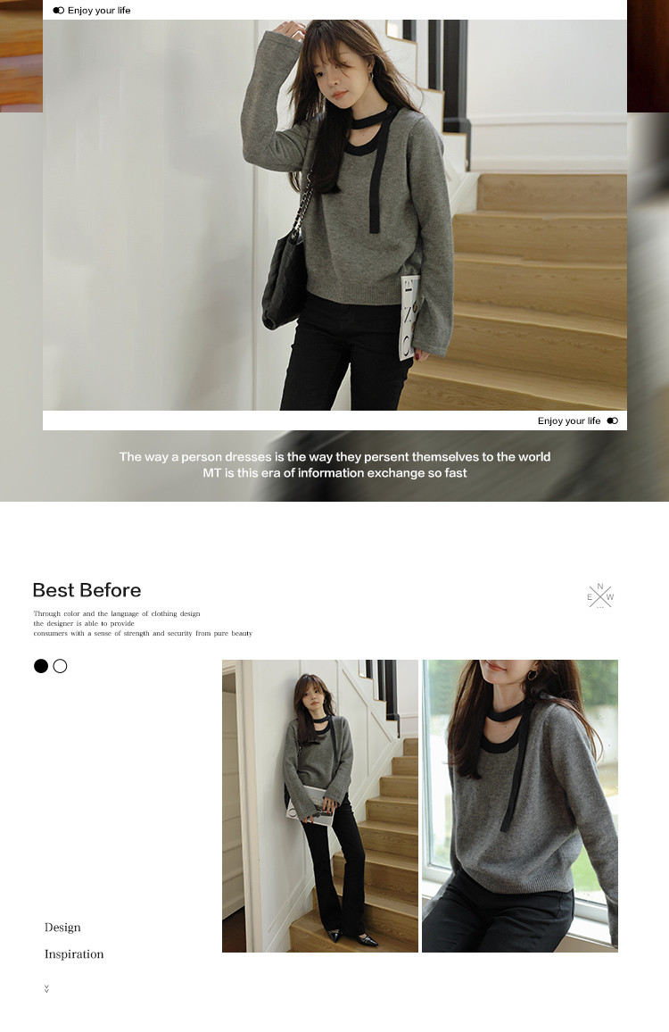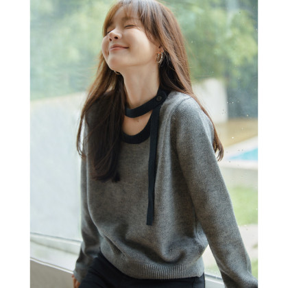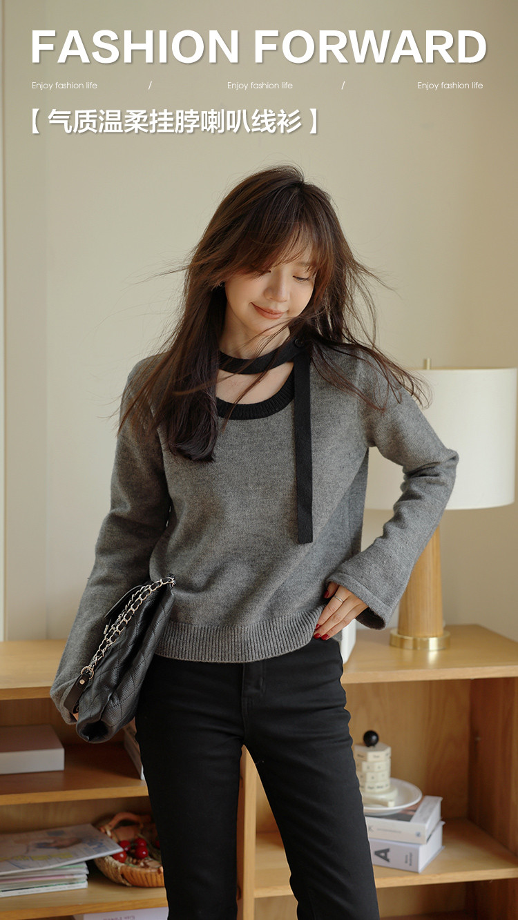 【气质镂空领】2025秋款喇叭长袖撞色针织毛线衫女