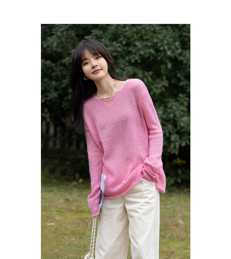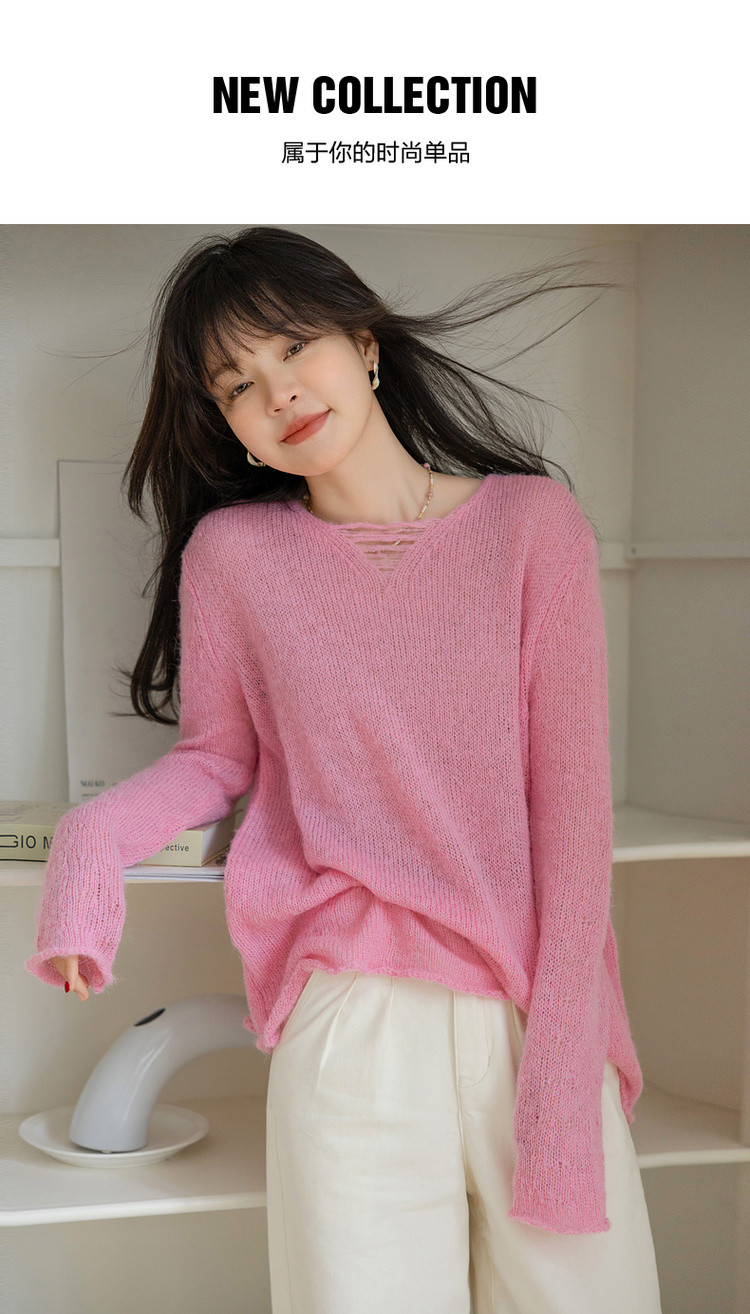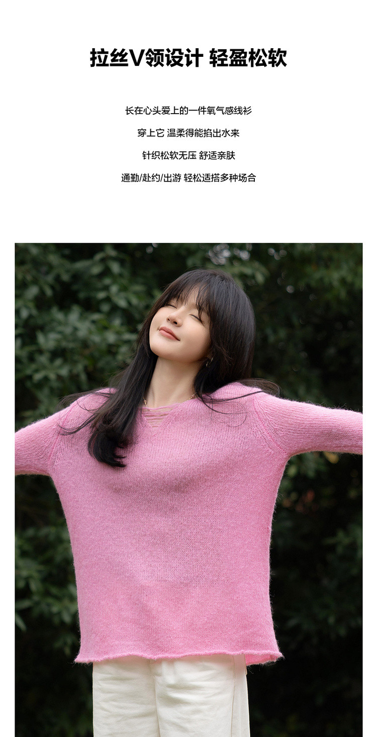 【温柔奶油甜心】秋季慵懒法式V领线衫含绵羊毛遮肉针织衫女上衣