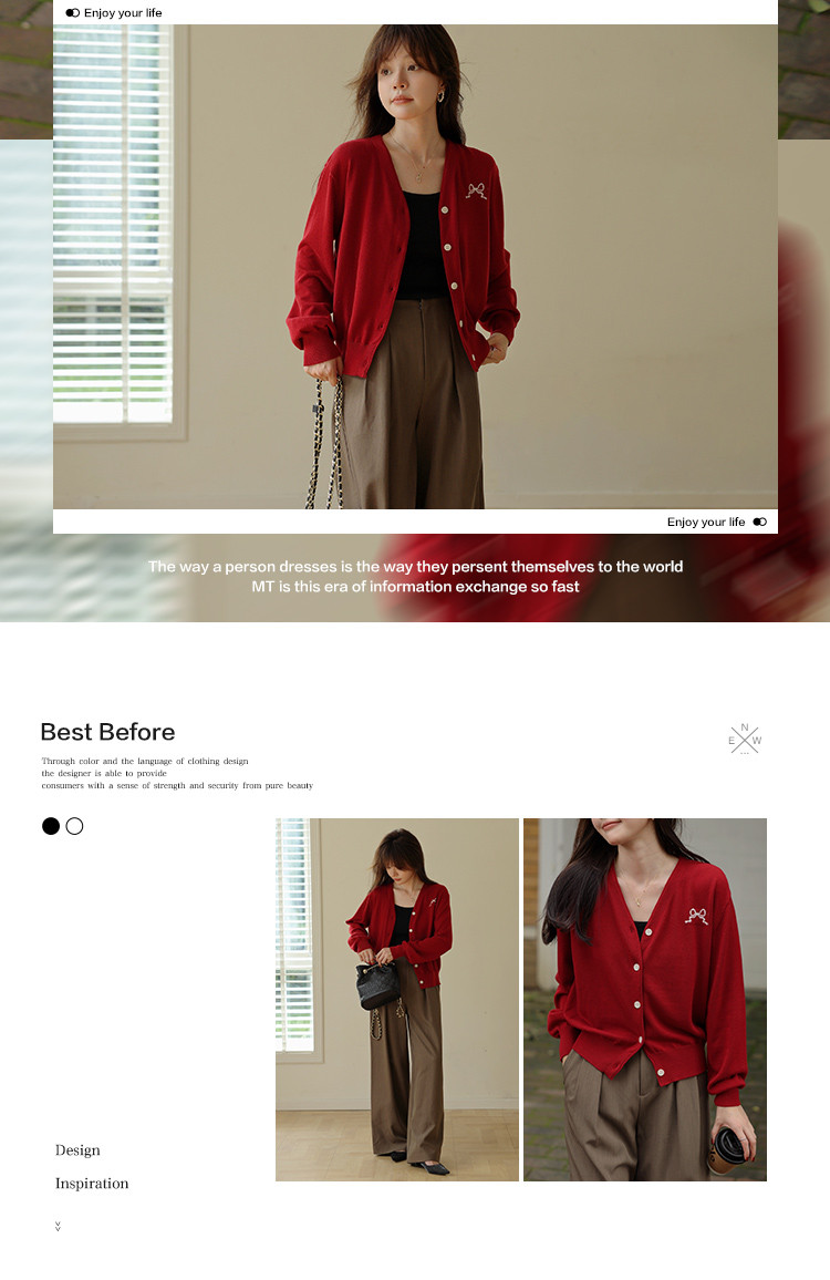 【高智感氛围】秋简约风绣花V领开衫软糯含绵羊毛针织衫女上衣
