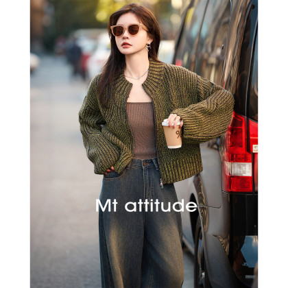 【显白】秋季重工设计 粗针小众设计针织开衫短外套