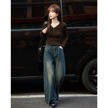 【腔调范儿骨感十足】秋季v领修身显白长袖针织衫